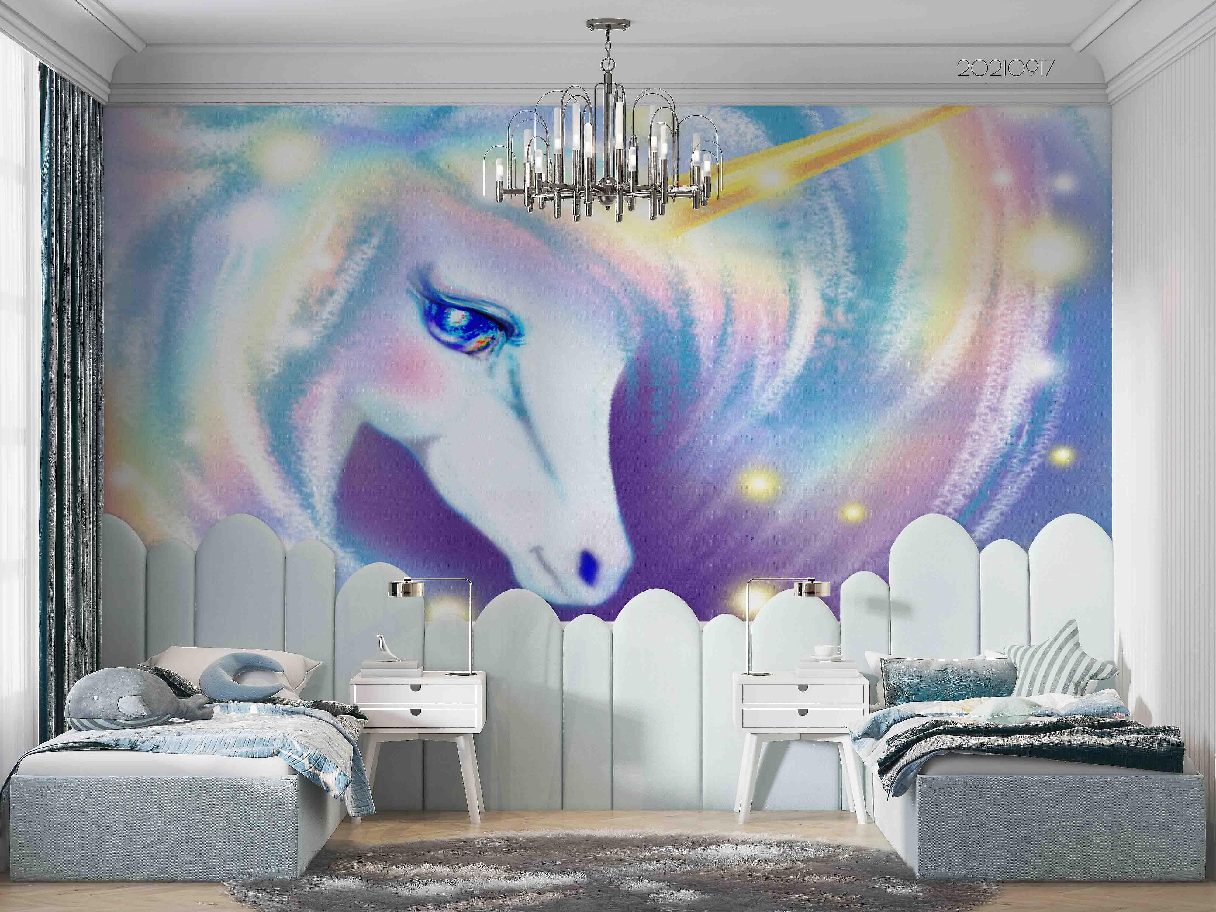 3D Cartoon Animal Unicorn Wall Mural Wallpaper Lqh 57