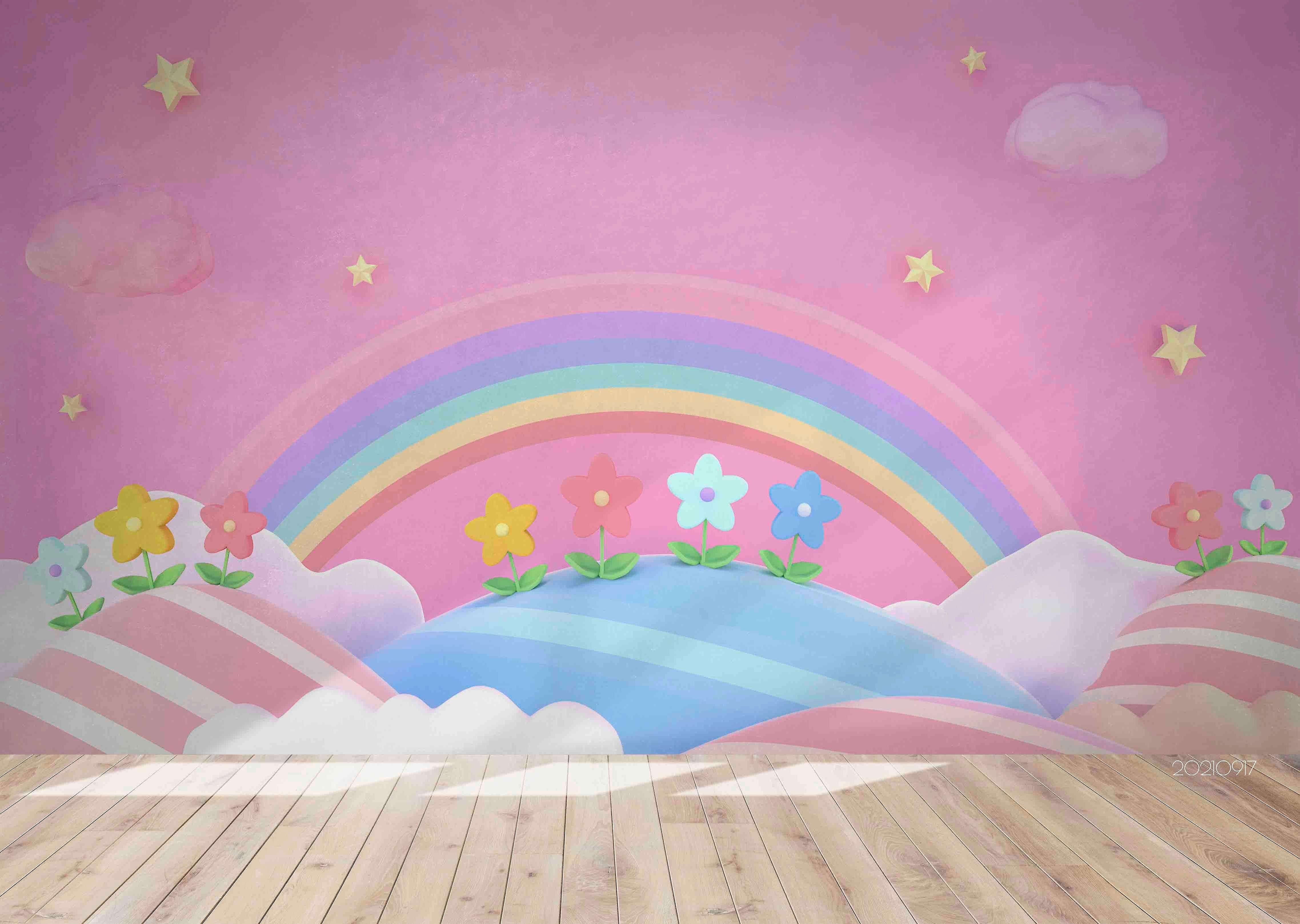 3D Cartoon Pink Sky Rainbow Wall Mural Wallpaper Lqh 66