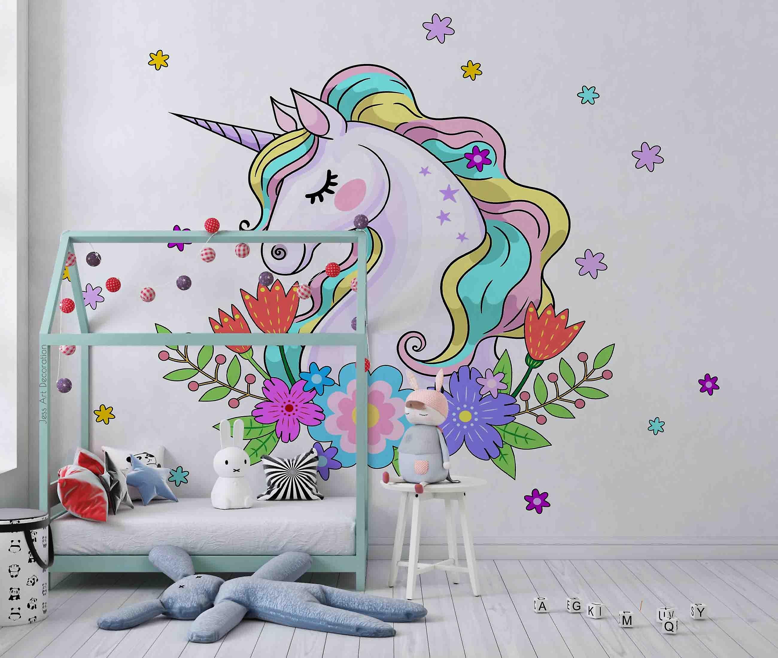 3D Cartoon Unicorn Star Flower Colorful Wall Mural Wallpaper Gd 2559