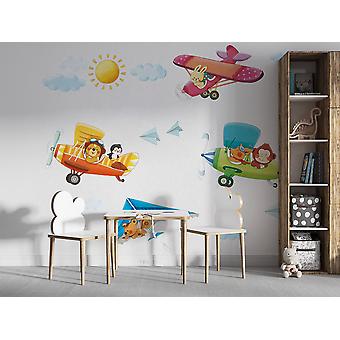 3D Cartoon Watercolor Airplane Critter Sky Sun Wall Mural Wallpaper Gd 3821