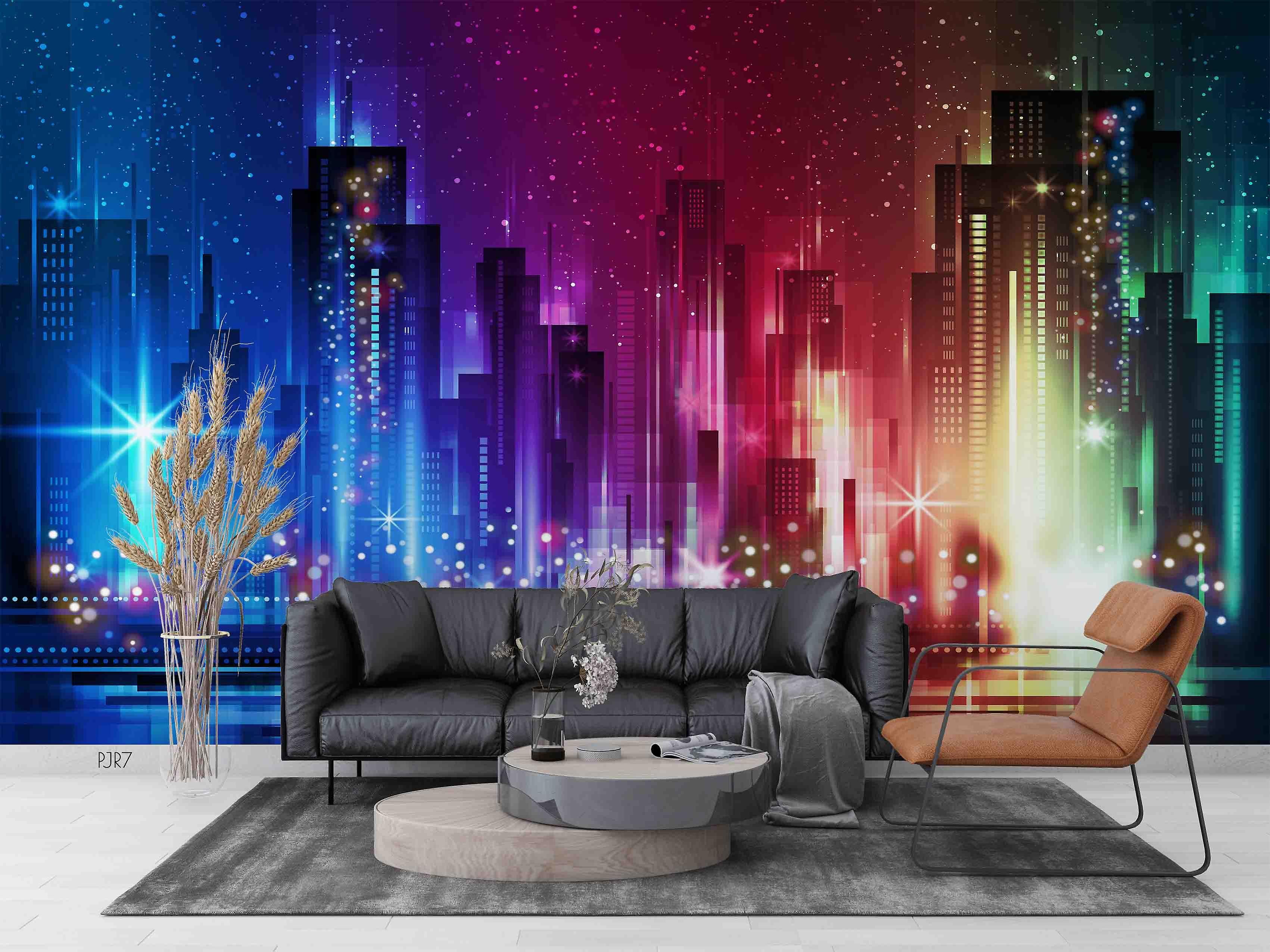 3D Color City Architecture Night View Wall Mural Wallpaper Lqh 70