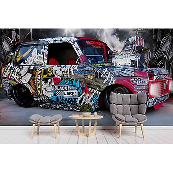 3D Colourful Graffiti Vintage Vehicle Wall Mural Wallpaper