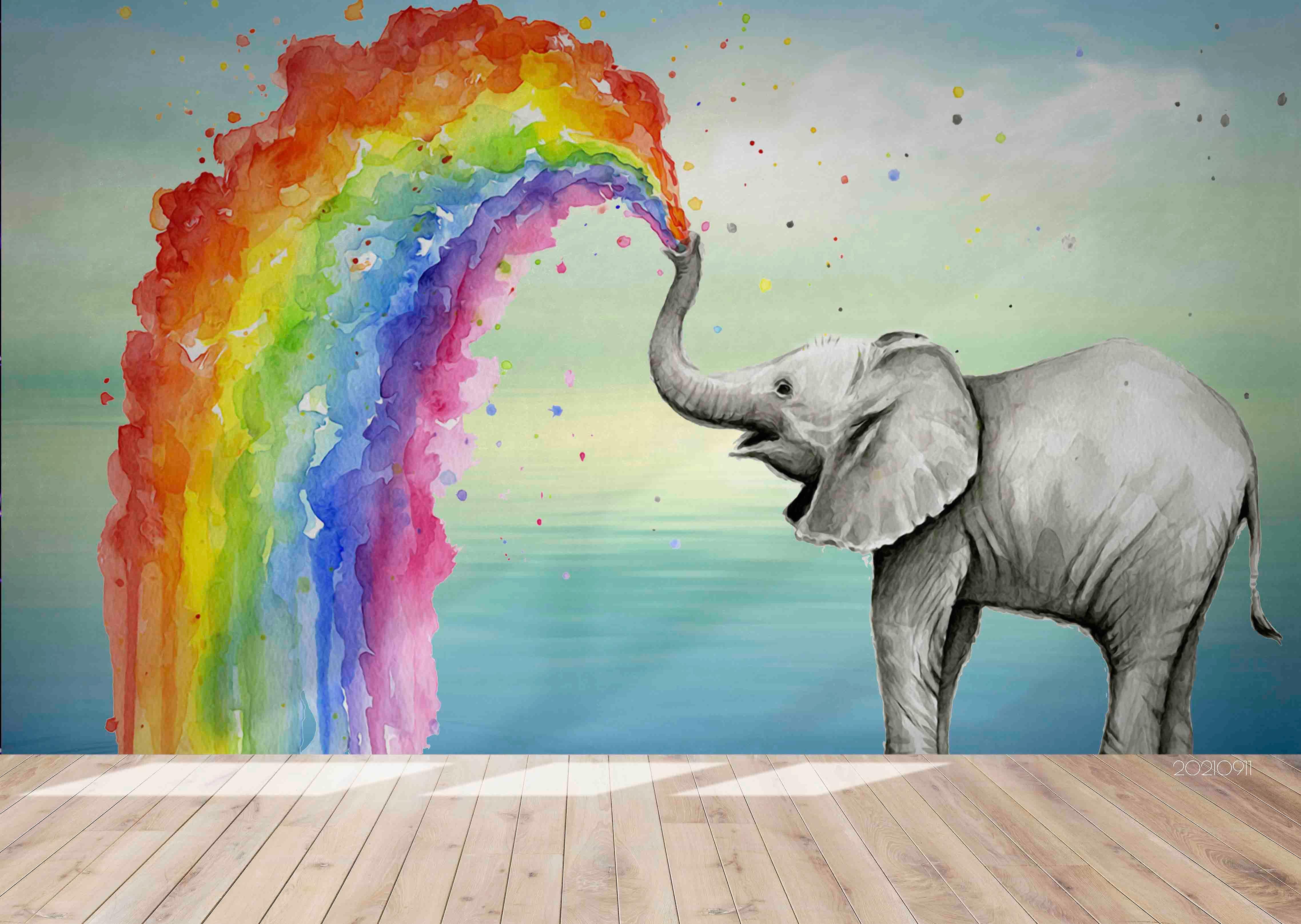 3D Elephant Rainbow Ocean Sea Wall Mural Wallpaper Lqh 769