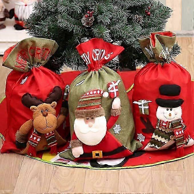 3D fabric christmas gift bag Drawstring Christmas Gift Bags Reusable Santa Sack Christmas decorations Christmas Party Supplies