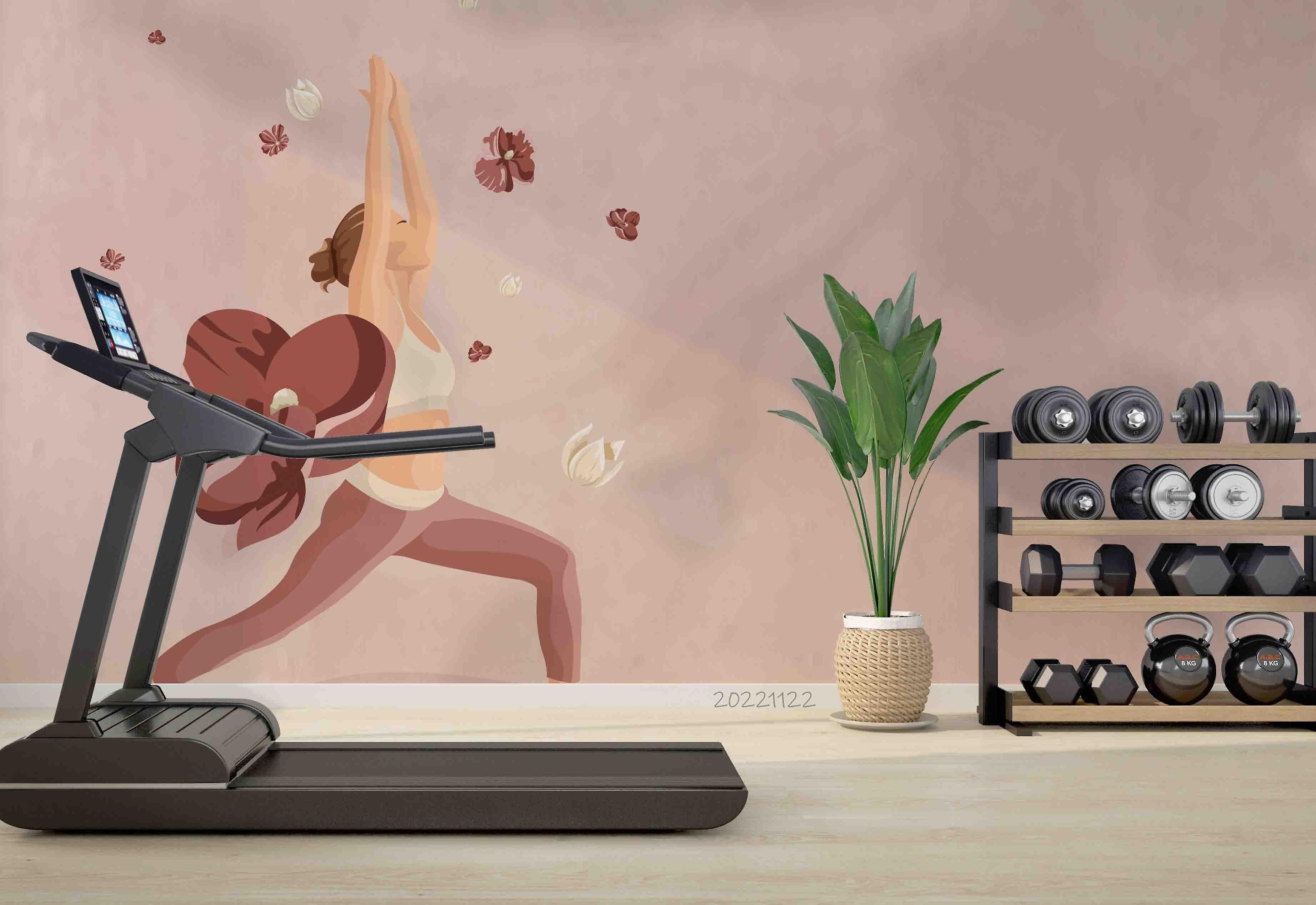 3D Female Yoga Fitness Lifestyle Floral Background Wall Mural Wallpaper Gd 2489