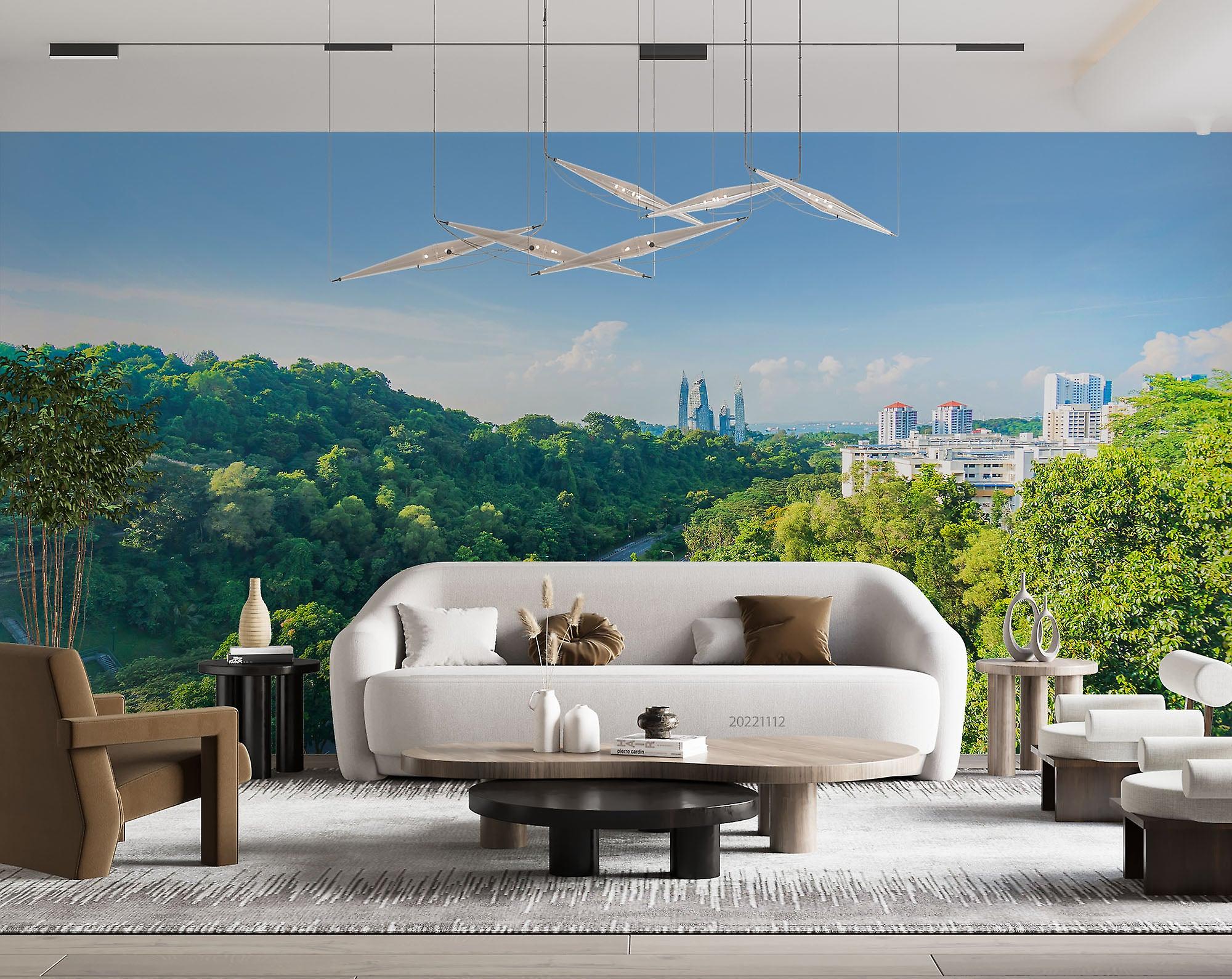 3D Forest Trees Green Fields City Modern Wall Mural Wallpaper Gd 2294