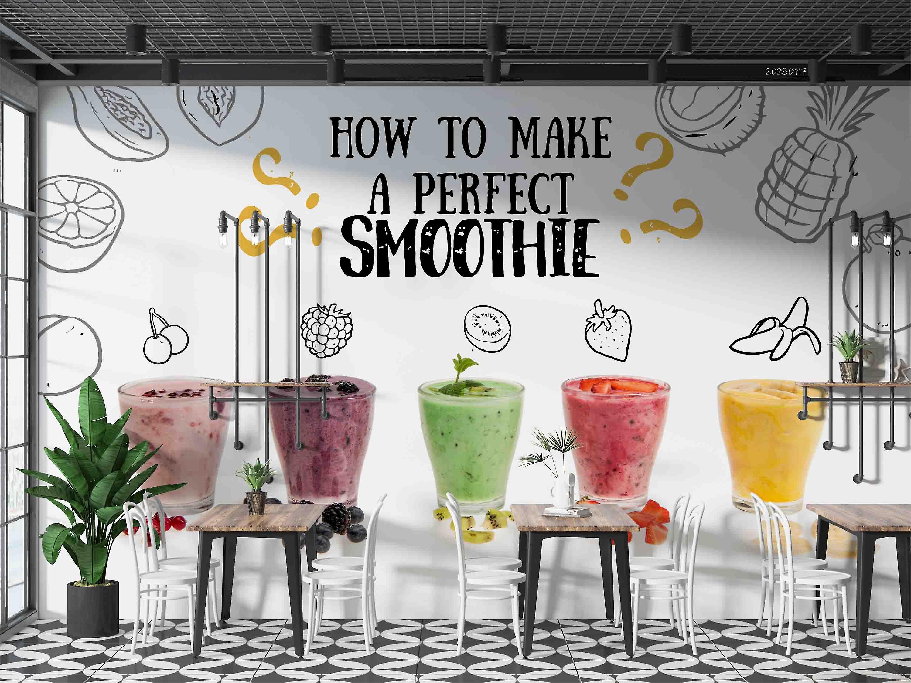 3D Fresh Fruit Smoothie Wall Mural Wallpaper Gd 1641