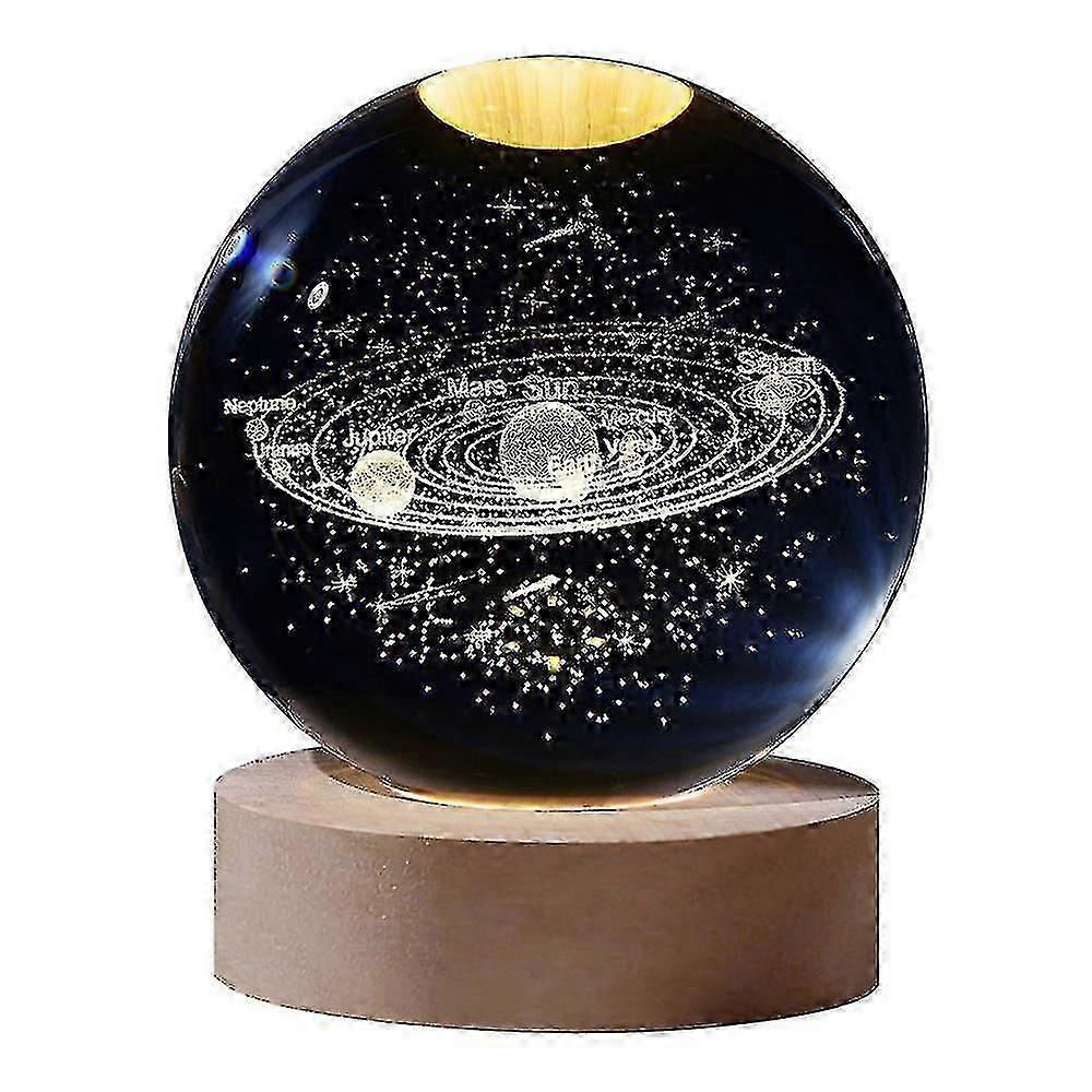 3d Galaxy Crystal Ball Lamp Lasers Engraving Night Light With Wooden Base For Bedroom Decor-Excellence