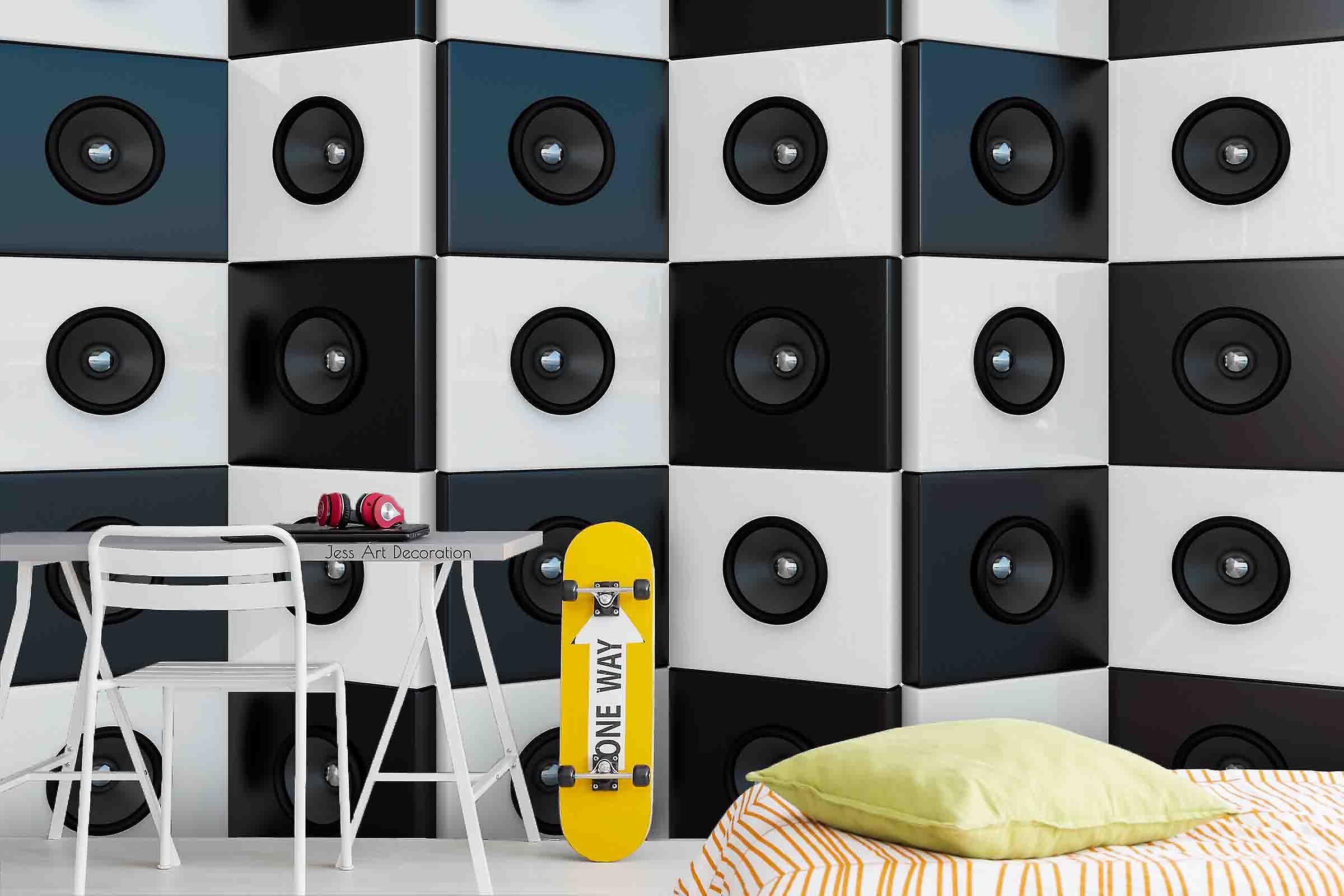 3D Geometry Speaker White Black Wall Mural Wallpaper Gd 2730