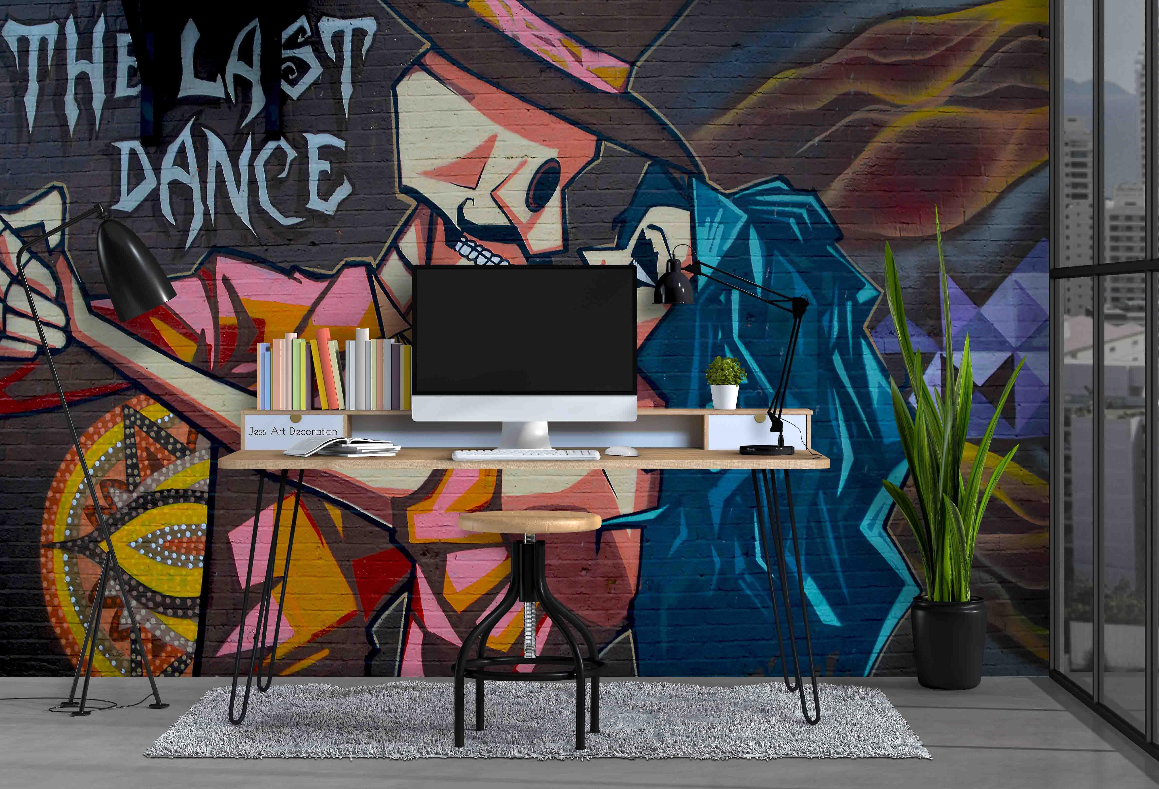 3D Graffiti Dance Couple Skull Wall Mural Wallpaper Gd 2525