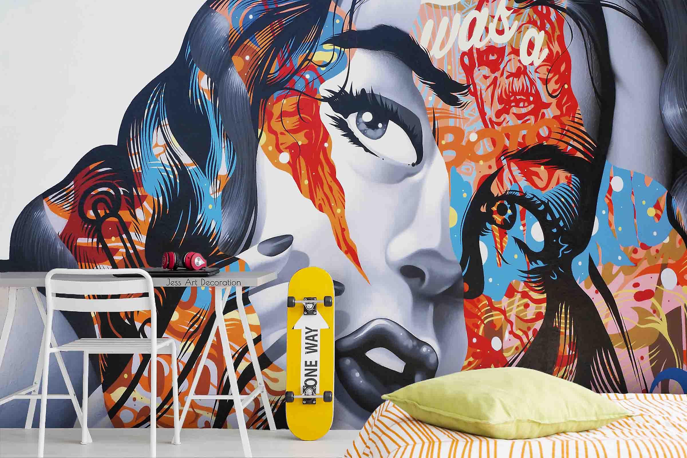 3D Graffiti Female Face Finger Wall Mural Wallpaper Gd 2774