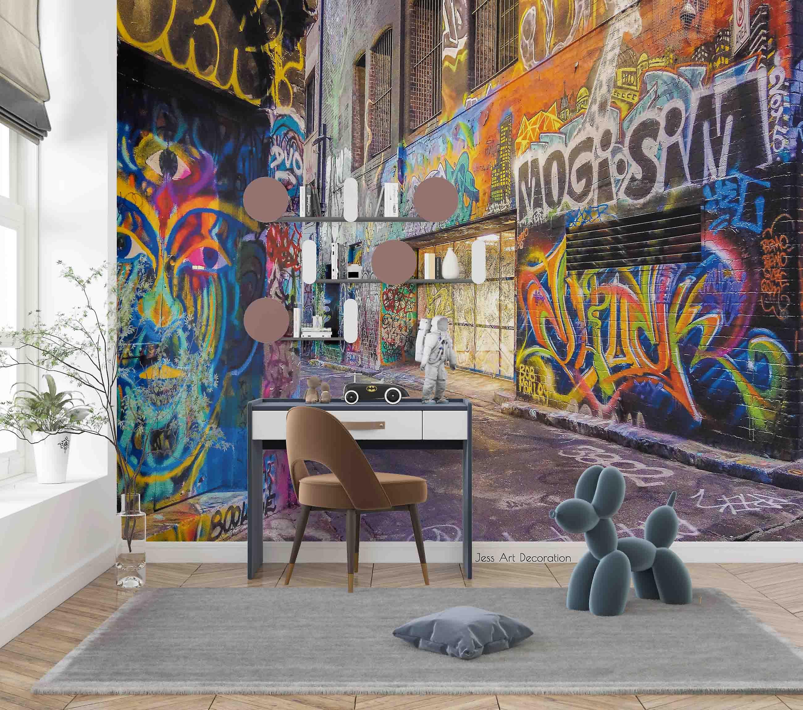 3D Graffiti Street Building Alphabet Faces Wall Mural Wallpaper Gd 2811