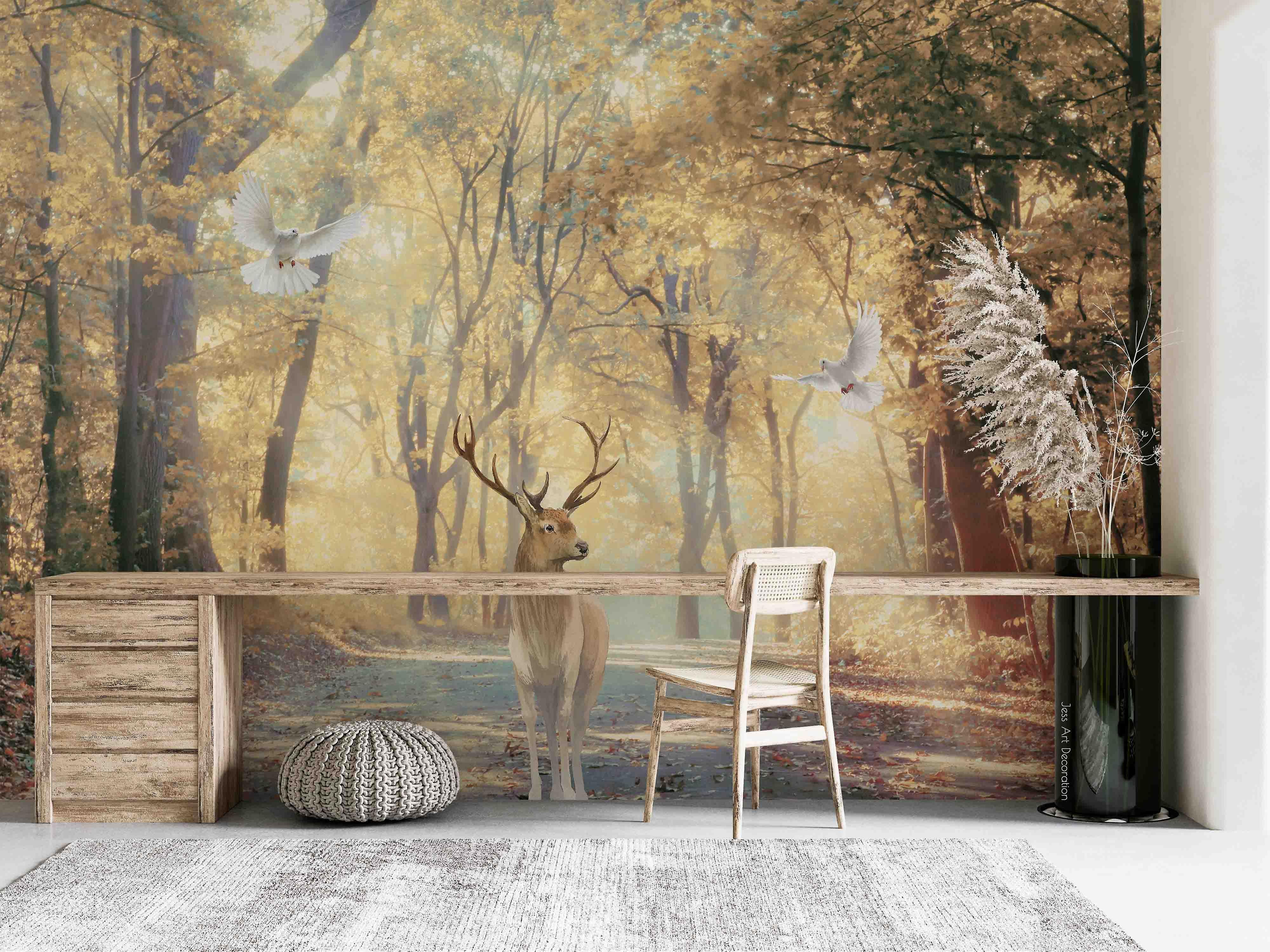 3D Hand Draw Forest Elk Wall Mural Wallpaper Sww 288