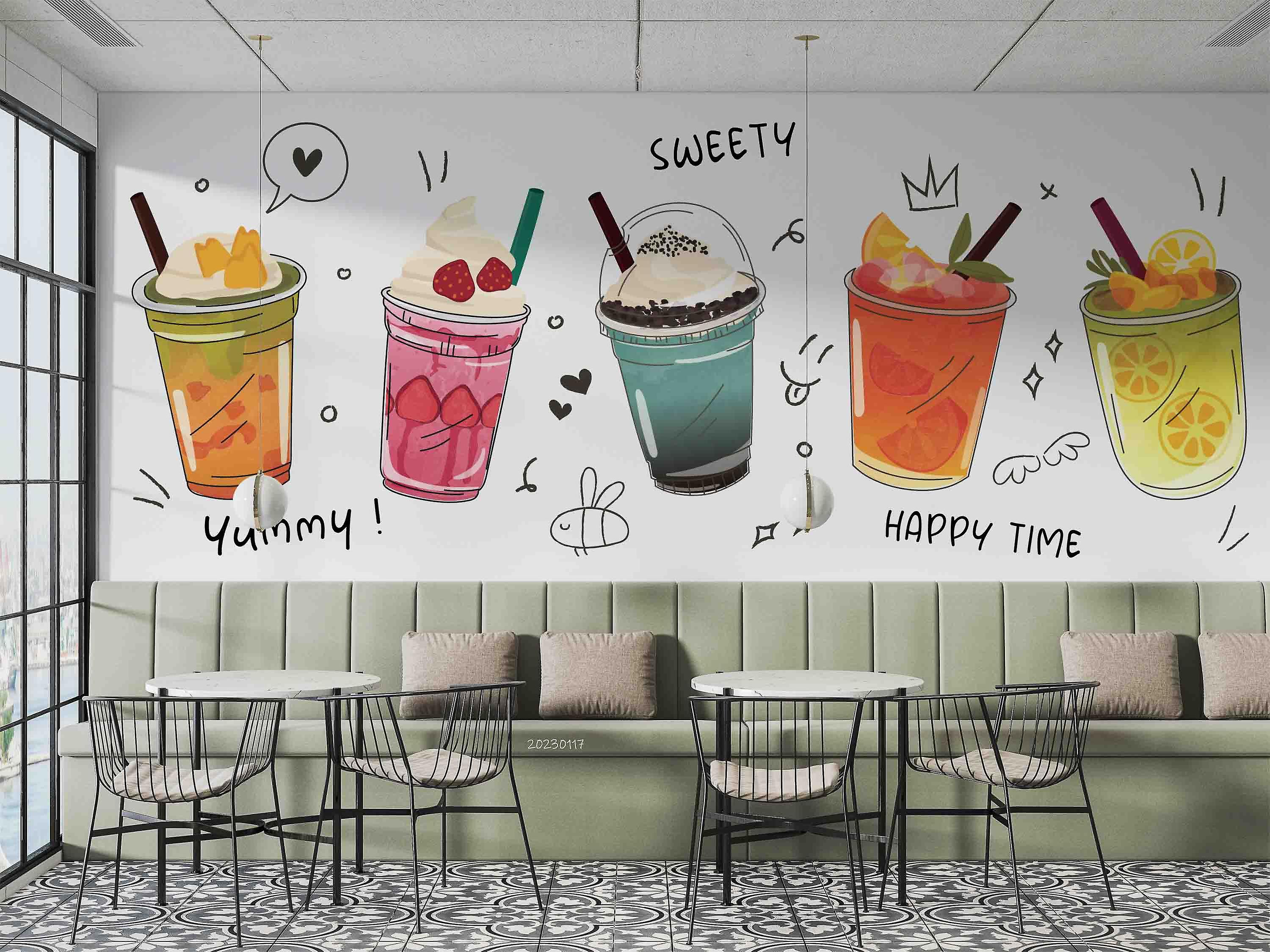 3D Hand Drawn Bubble Tea Pearl Tea Milk Tea Shop Wall Mural Wallpaper Jn 12