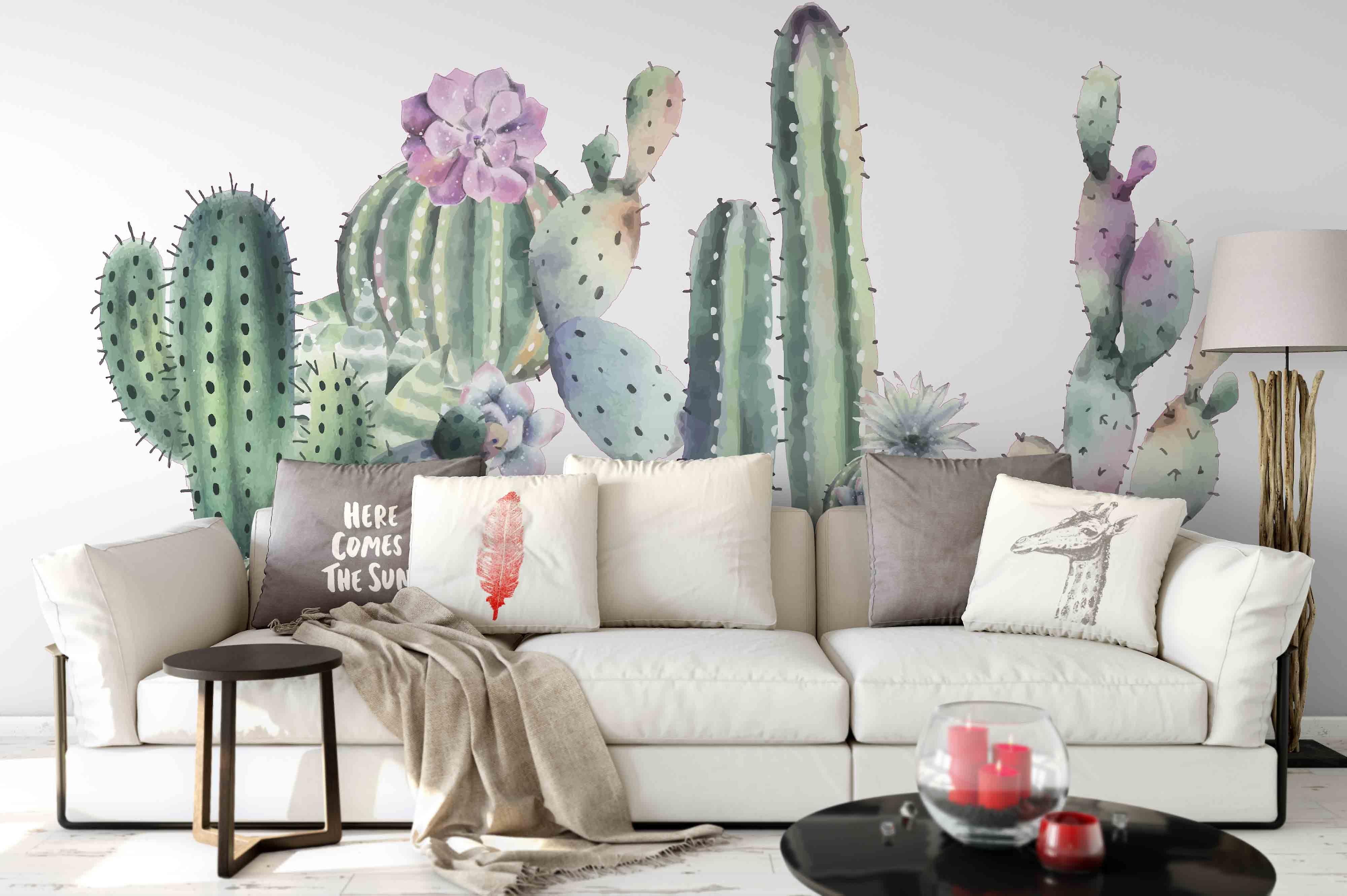 3D Hand Drawn Cactus Floral Wall Mural Wallpaper Lqh 111