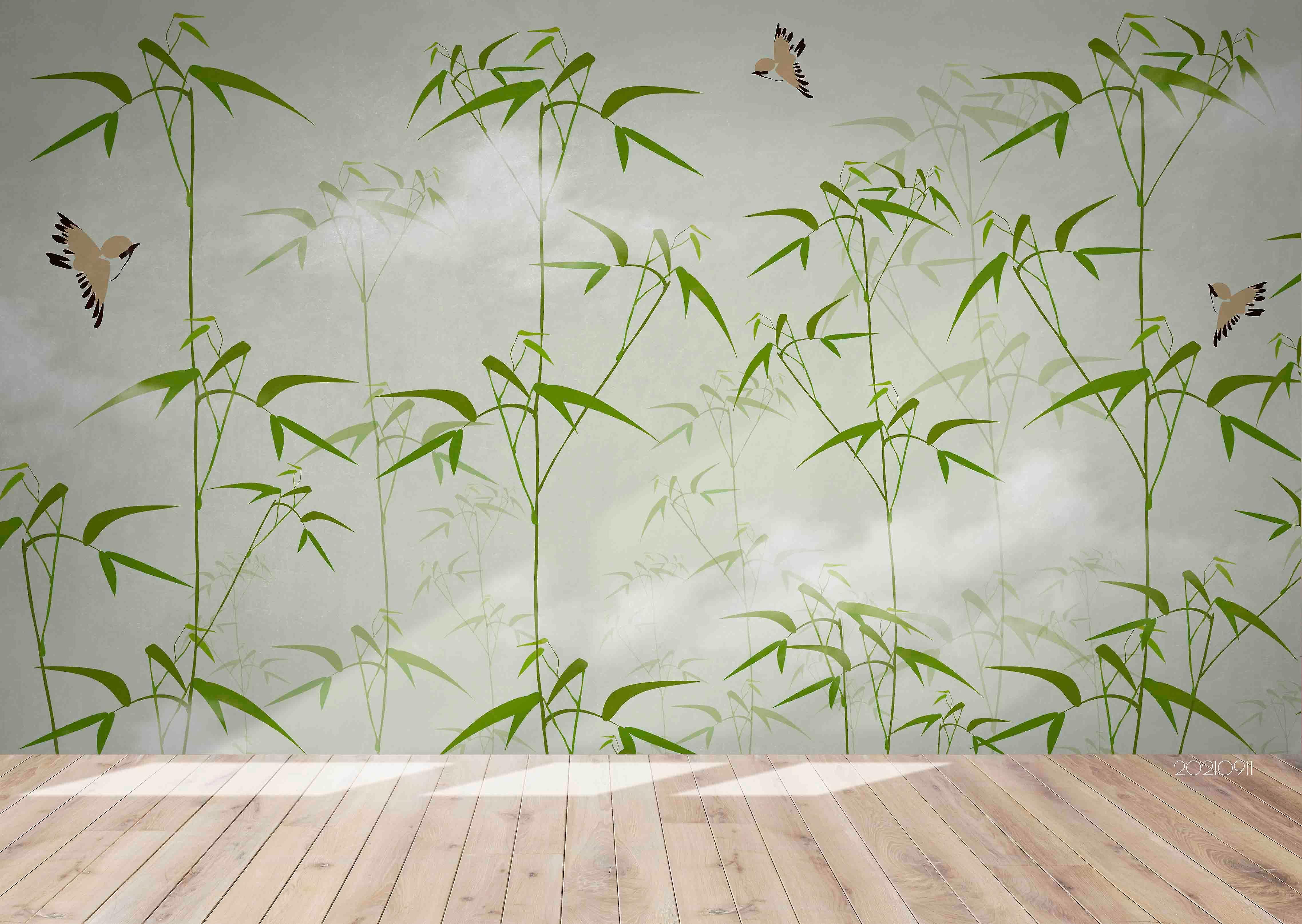 3D Hand Drawn Green Bamboo Wall Mural Wallpaper Lqh 773