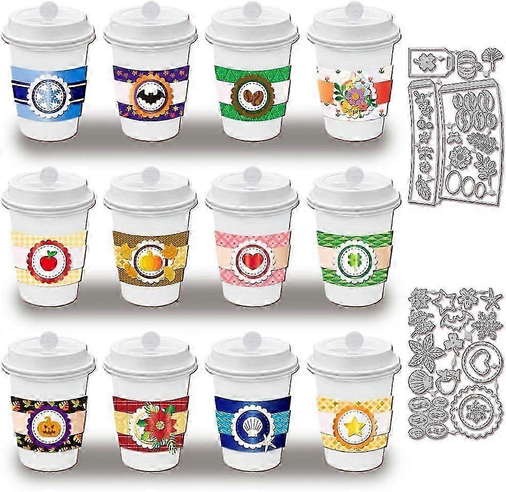 3D Holiday Coffee Cup Set Cut Dies Metal Coffee Cup Frame Cut Dies Four Seasons Festival Cutting Dies for Cards Making DIY Scrapbooking Decor Embossin