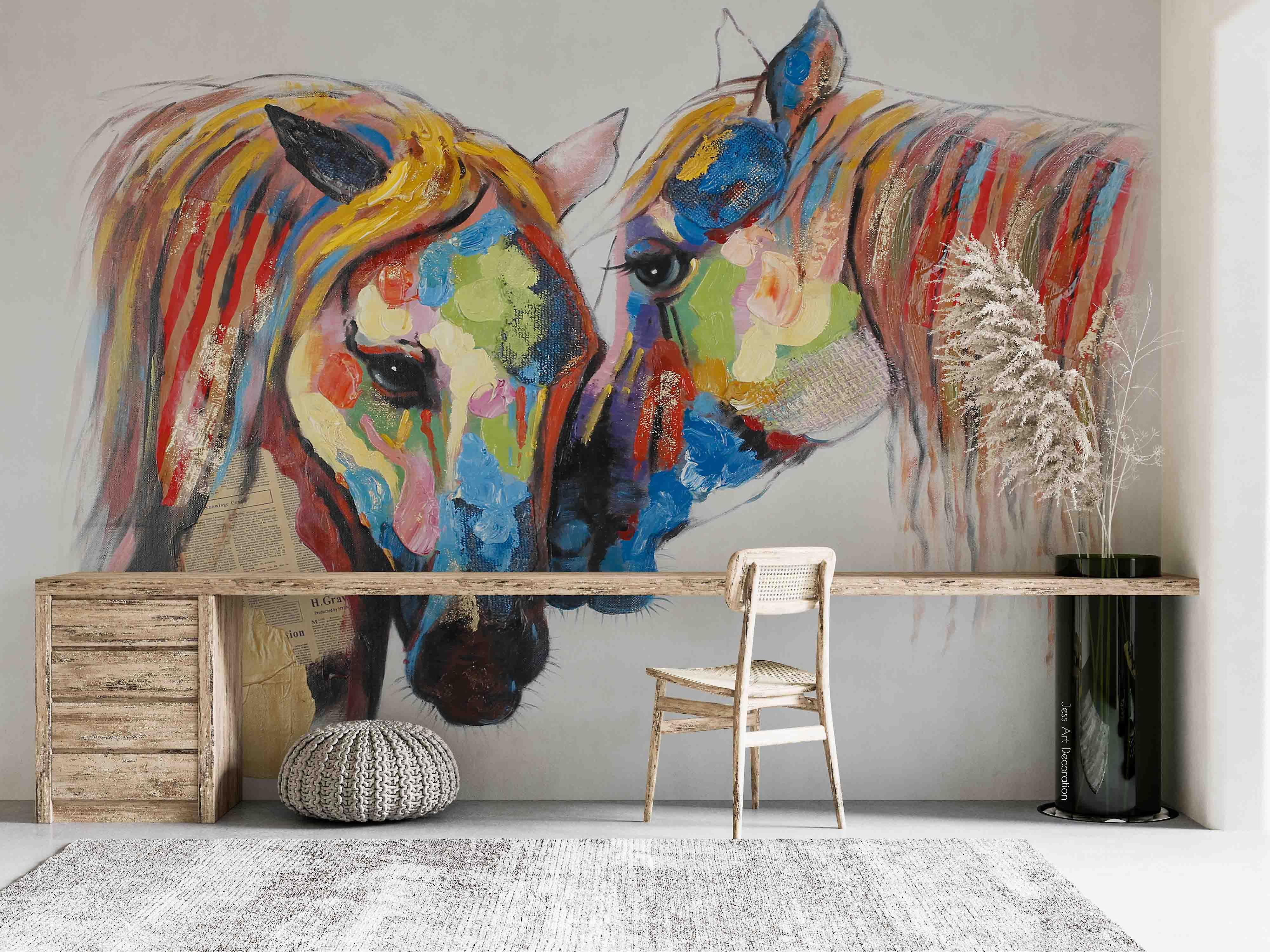 3D Horse Couple Colorful Wall Mural Wallpaper Gd 2587