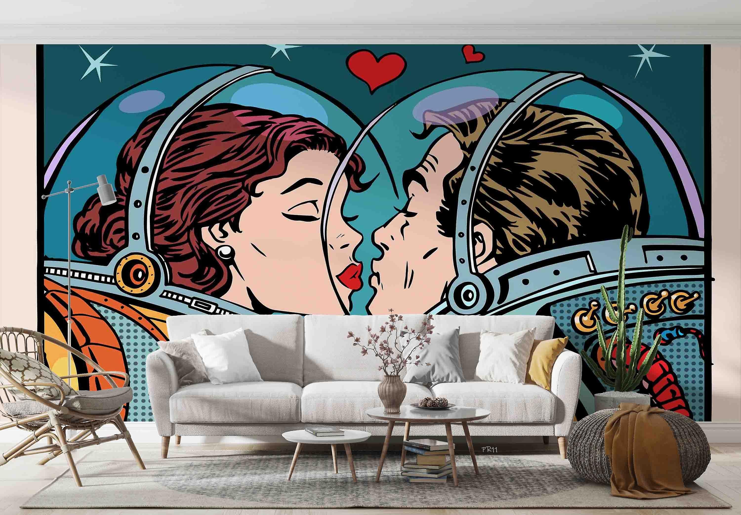 3D Kiss Space Male Female Astronaut Wall Mural Wallpaper Gd 4901