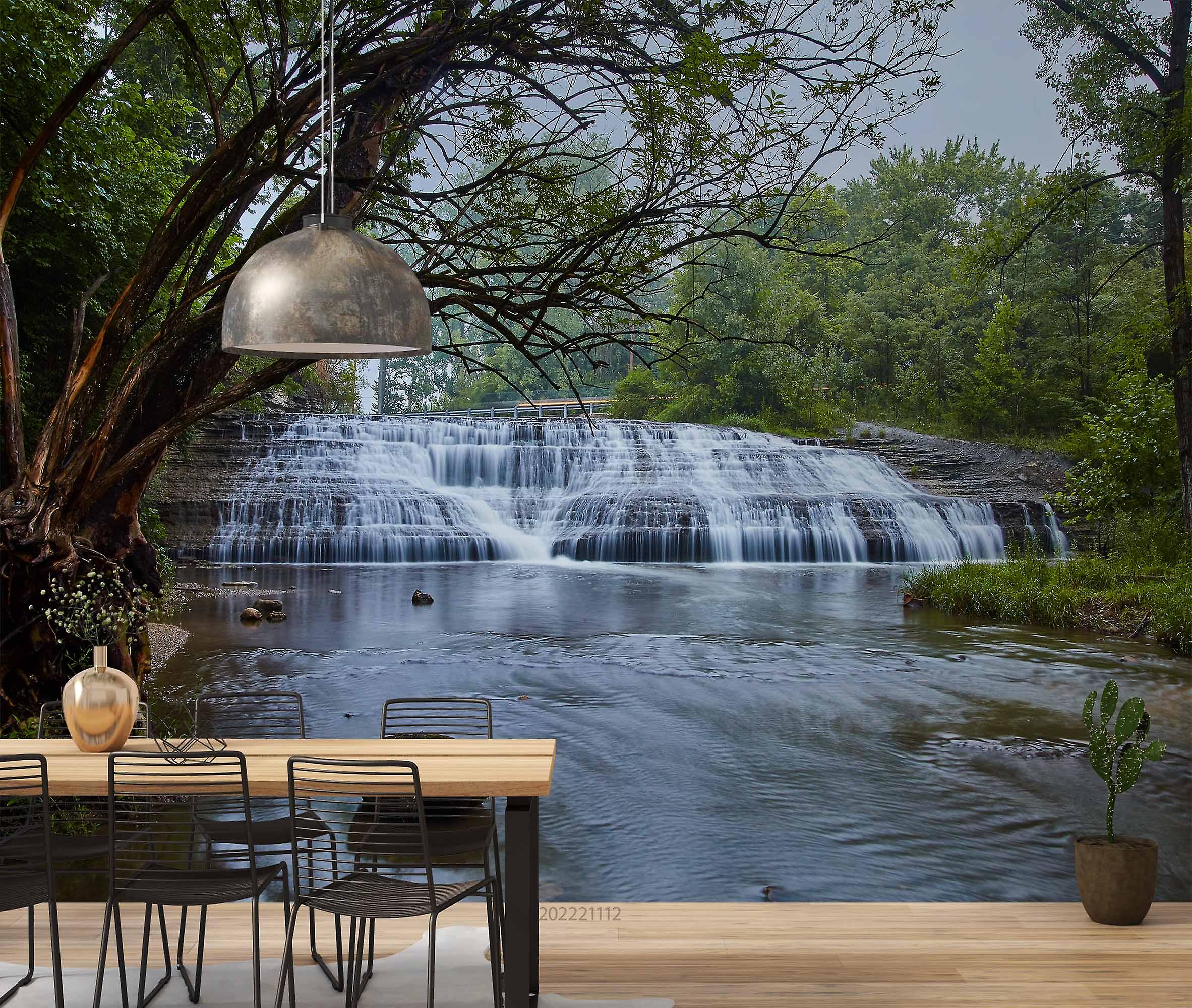 3D Large Cascade Waterfall Tree Hanging River Green Forest Wall Mural Wallpaper Gd 2261