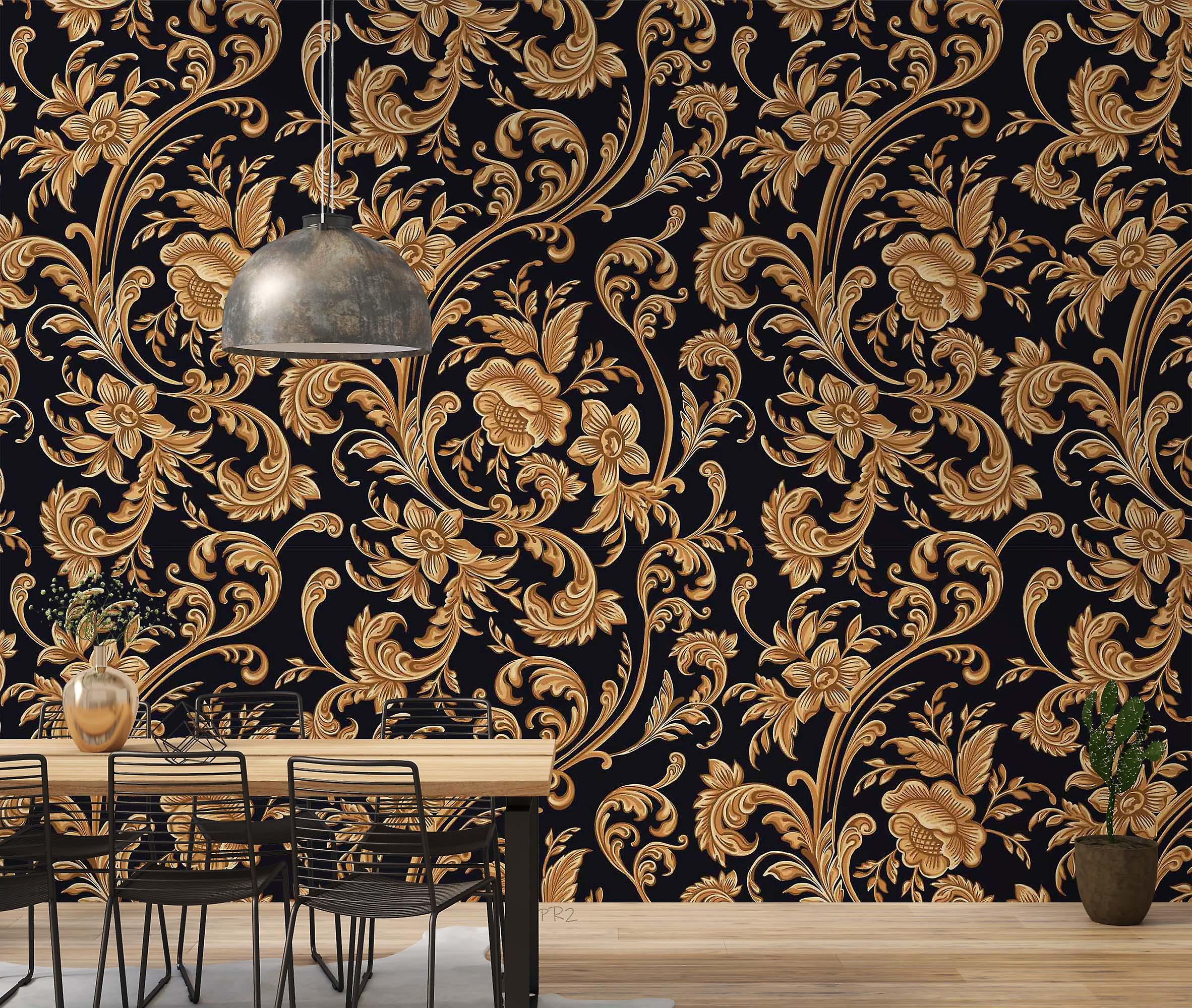 3D Luxury Baroque Golden Floral Wall Mural Wallpaper Gd 3697