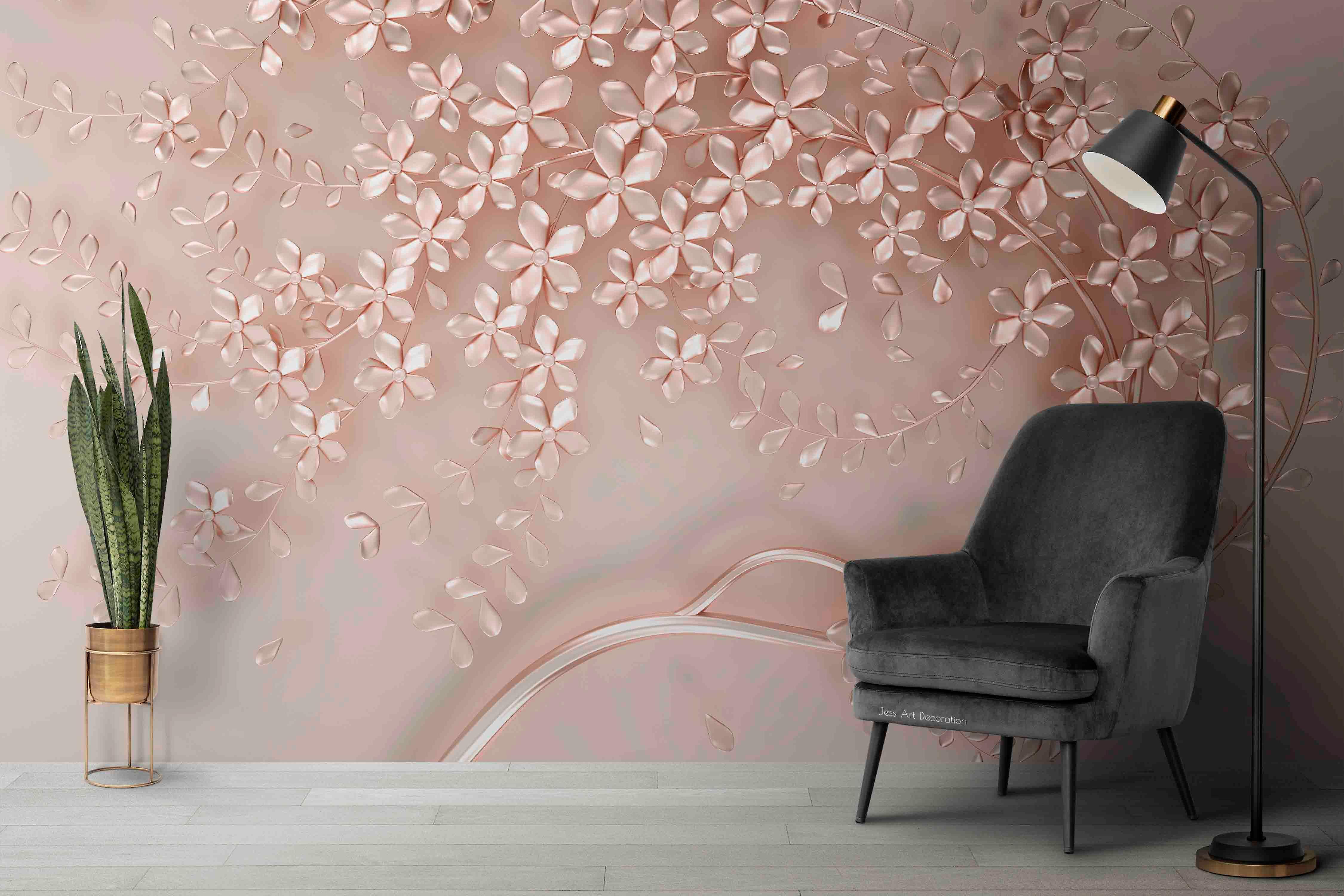 3D Metal Tree Floral Wall Mural Wallpaper Sww 191