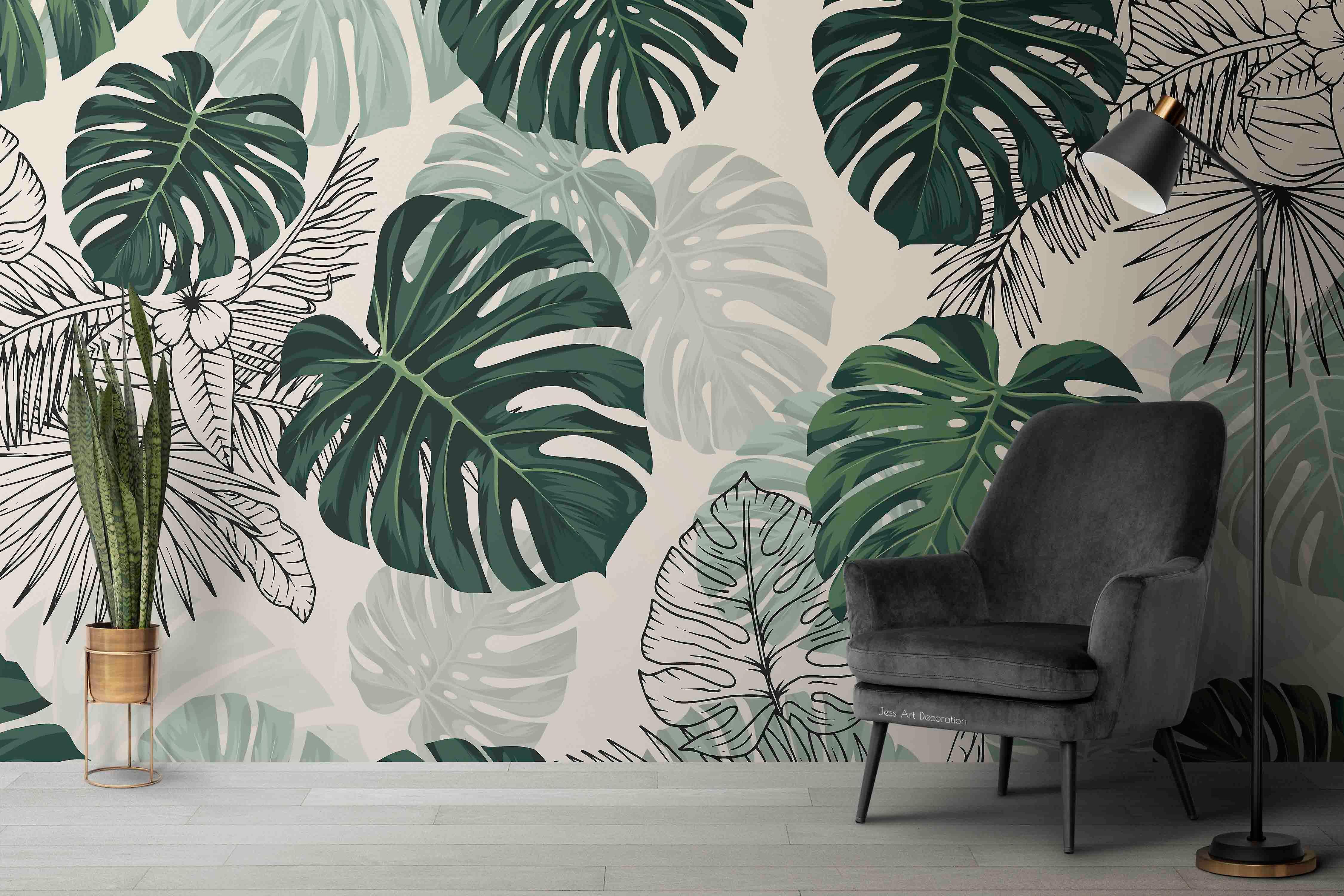 3D Monstera Leaf Pattern Wall Mural Wallpaper Gd 2971