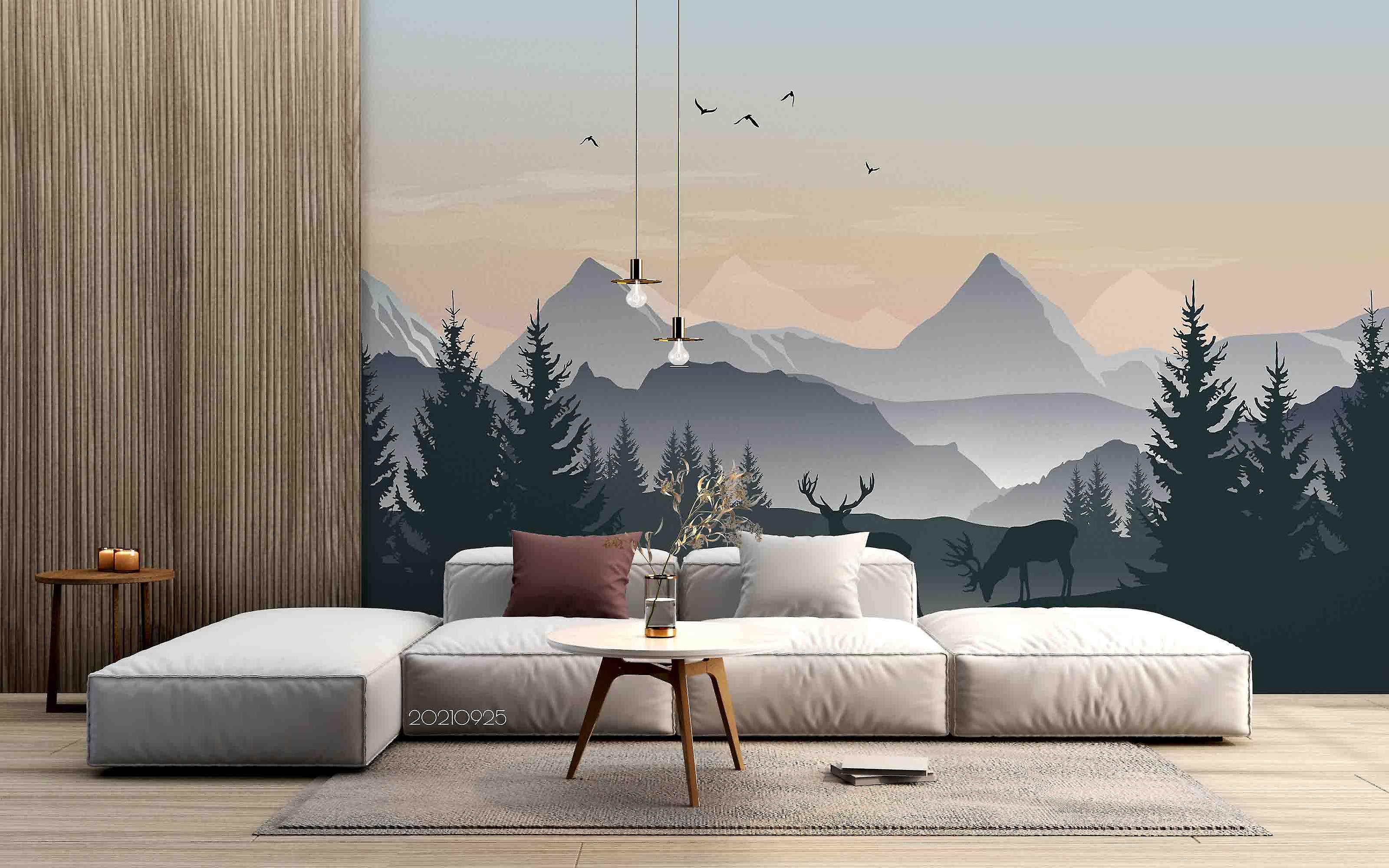 3D Mountain Forest Animal Elk Wall Mural Wallpaper Lqh 199