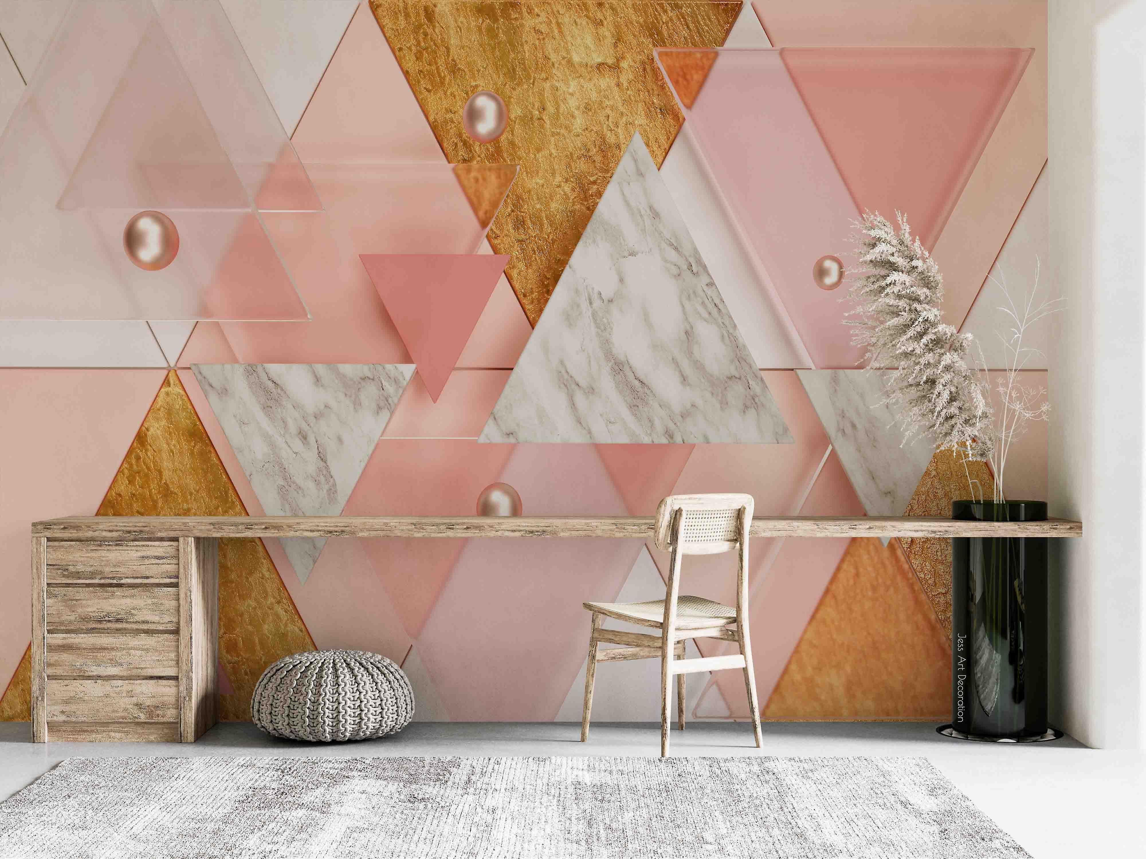 3D Pearl Geometric Triangle Marble Pink Gold Wall Mural Wallpaper Gd 2578