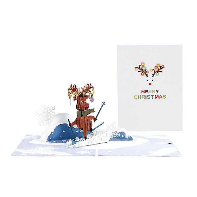 3D Pop Up Christmas Greeting Card Xmas Elk Flower Basket Handmade Envelope Cards for New Year Thanksgiving