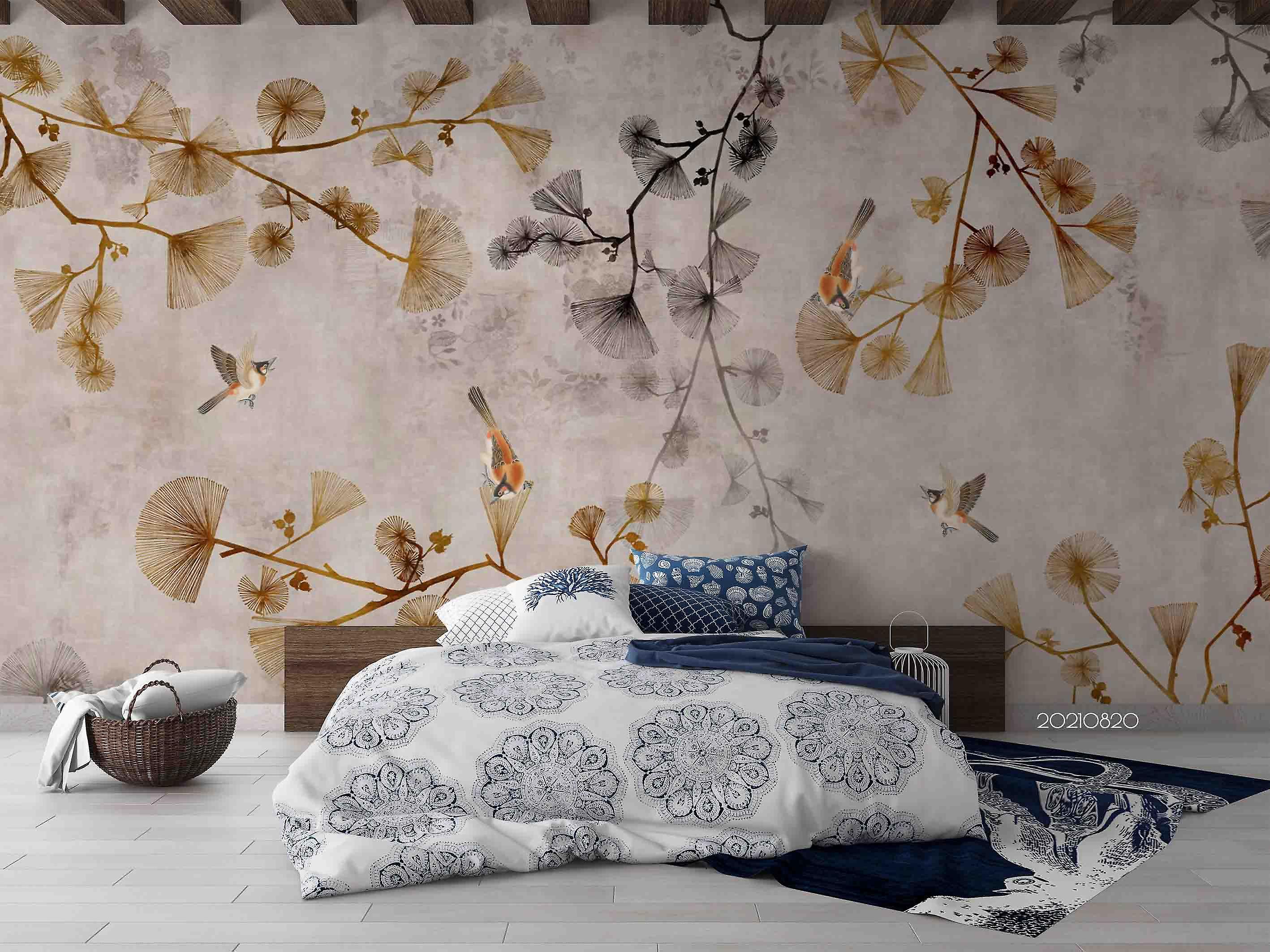 3D Retro Ginkgo Leaf Wall Mural Wallpaper Lqh 76