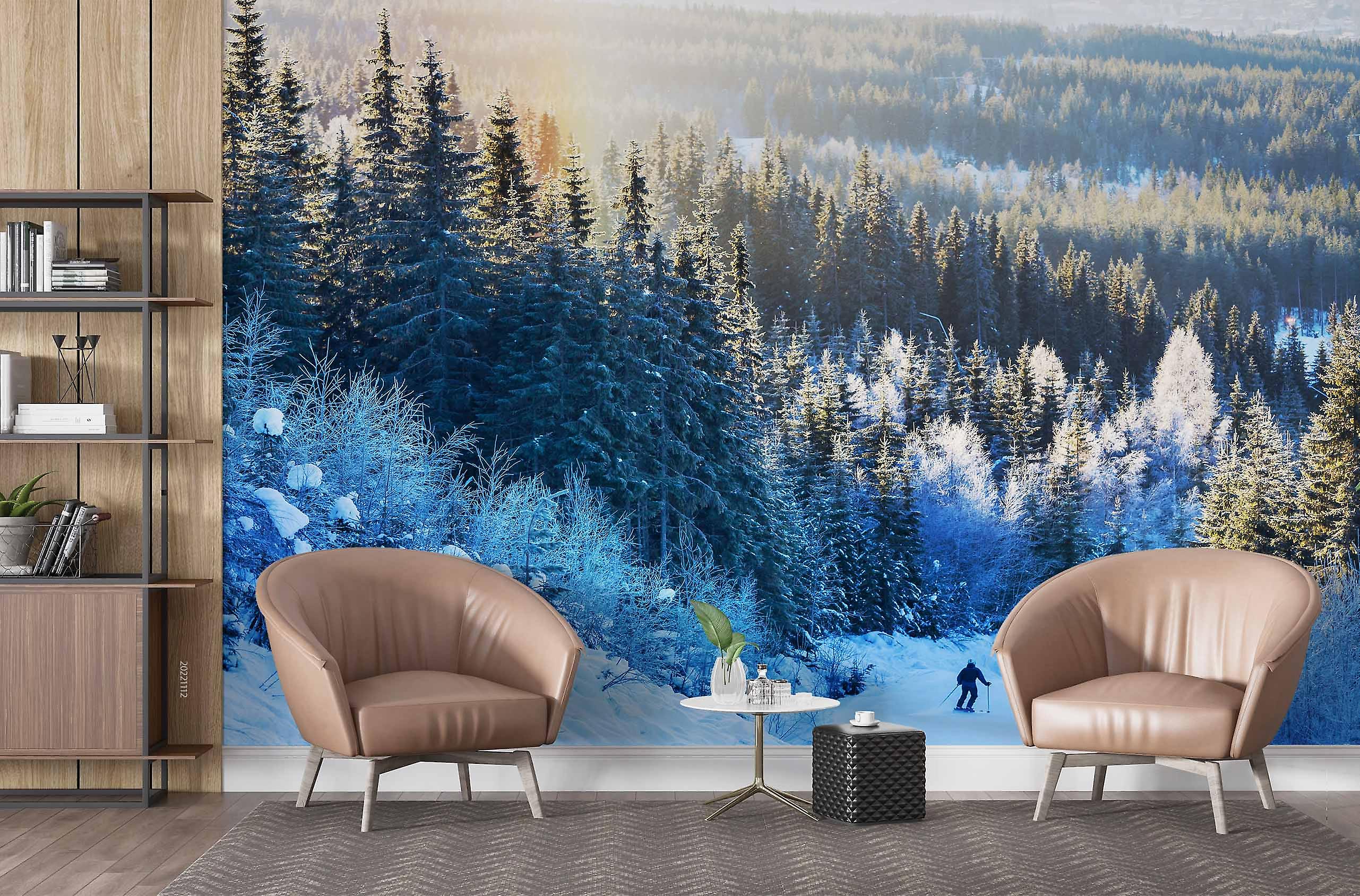3D Ski Resort Snow Forest Trees Wall Mural Wallpaper Gd 2169