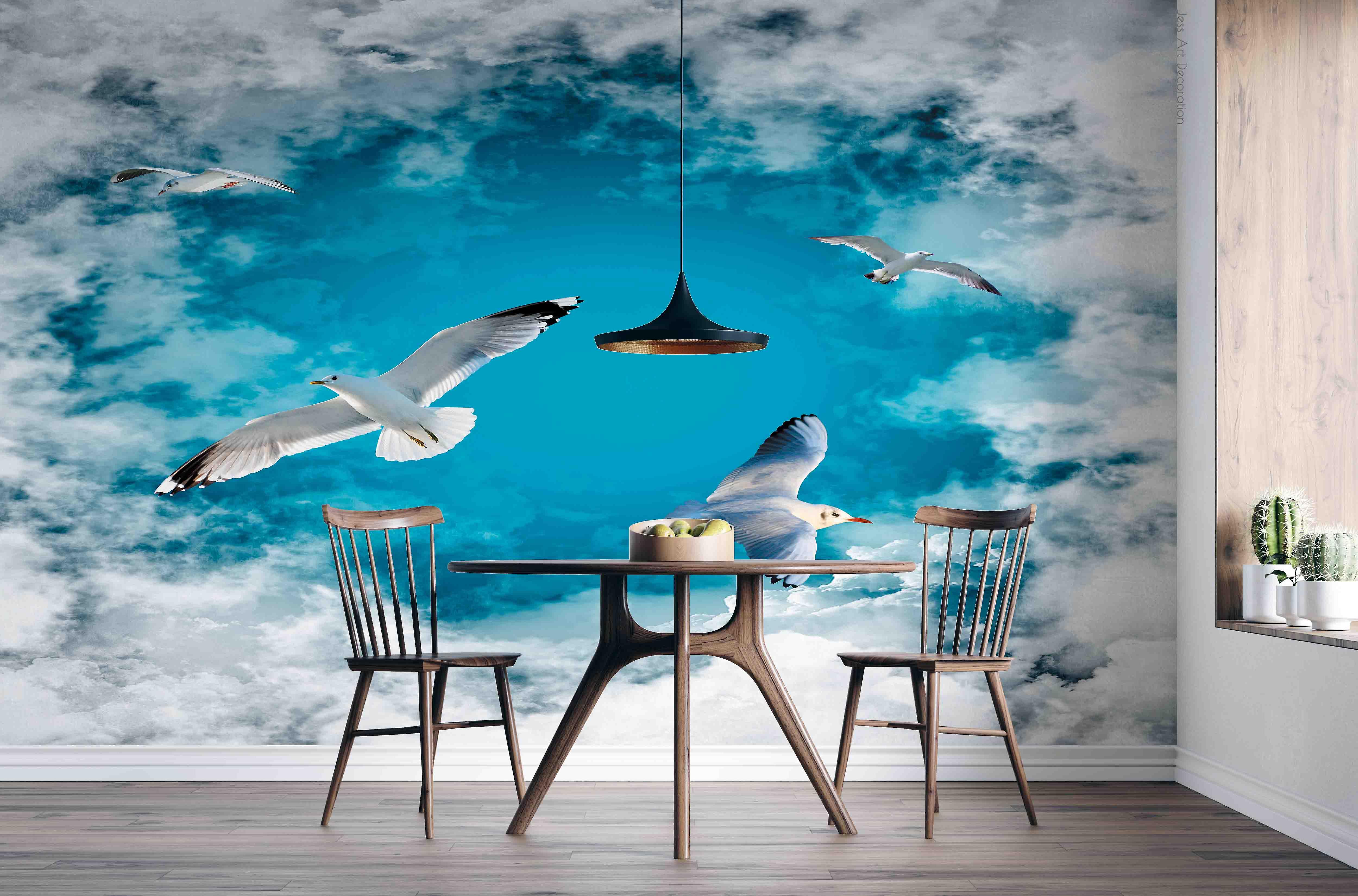 3D Sky Seagull Wall Mural Wallpaper Sww 252