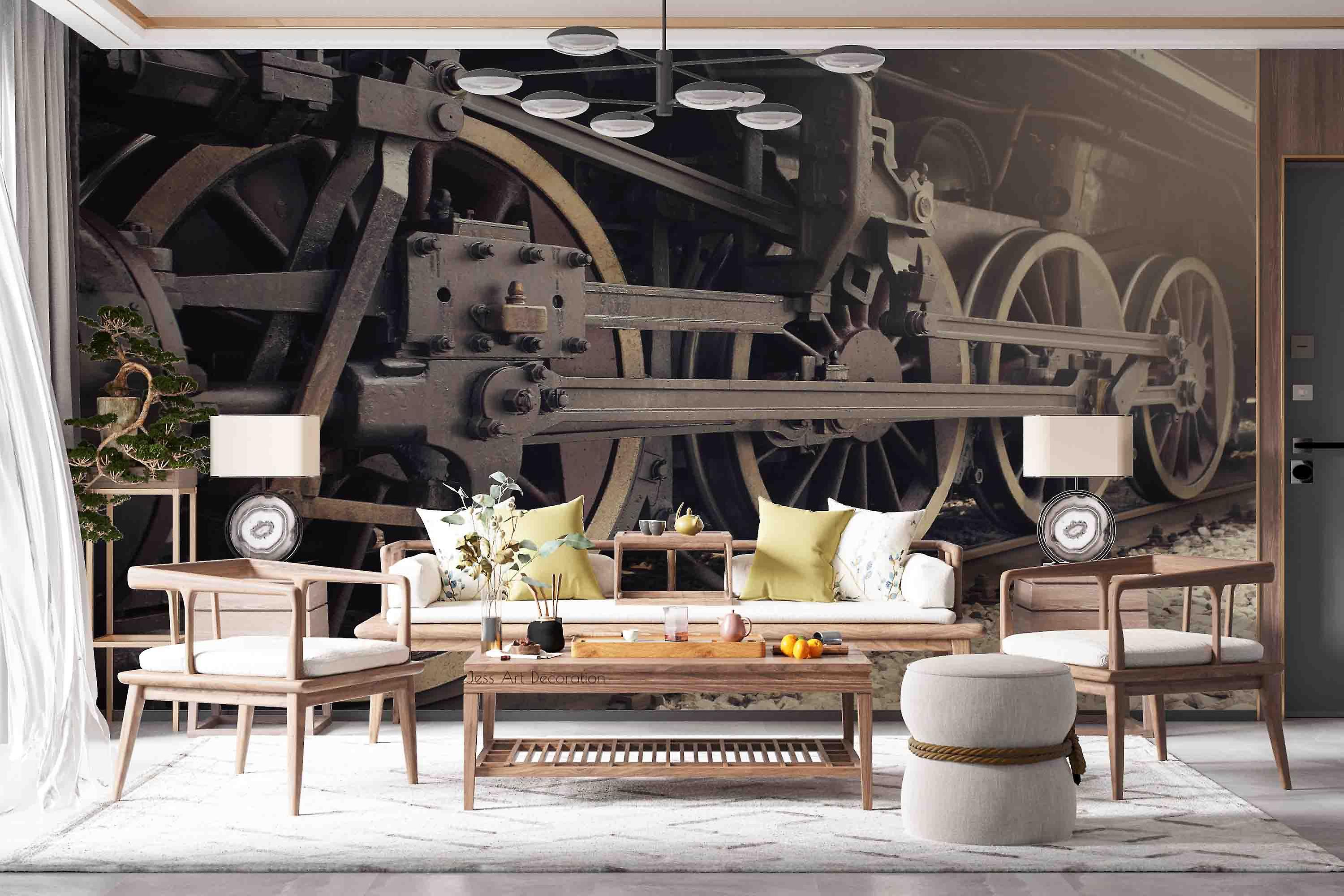 3D Steel Train Wheel Railroad Track Wall Mural Wallpaper Gd 2826