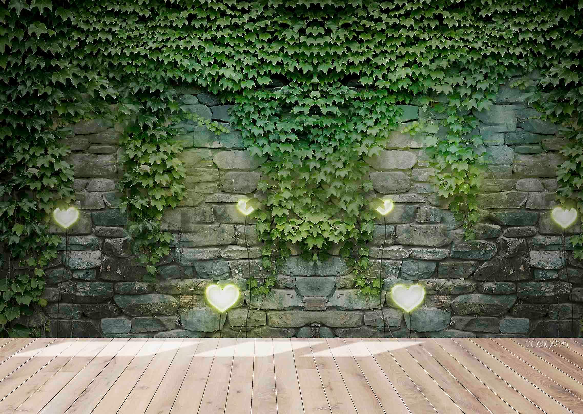 3D Stone Wall Green Plant Leaf Wall Mural Wallpaper Lqh 263