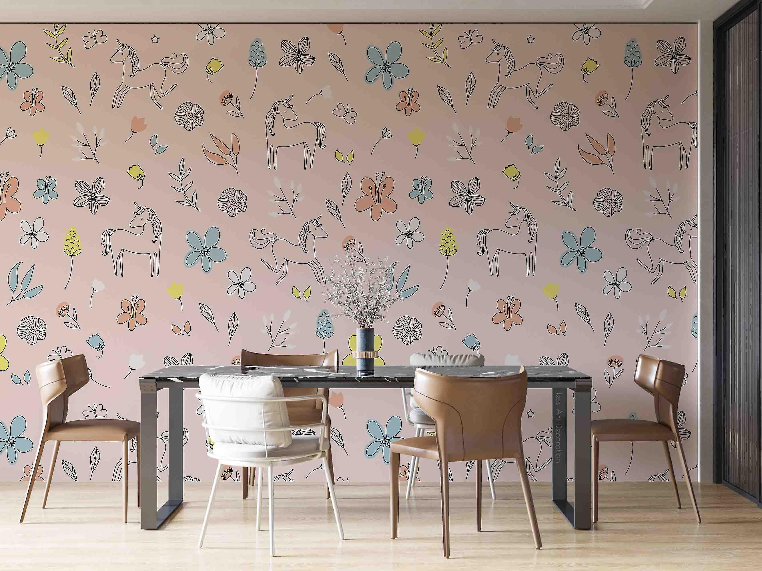 3D Unicorn Plant Leaf Flower Pattern Wall Mural Wallpaper Gd 2571