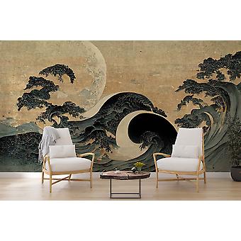 3D Wave Moon Painting Old Japanese Style Wall Mural Wallpaper Gd 2248