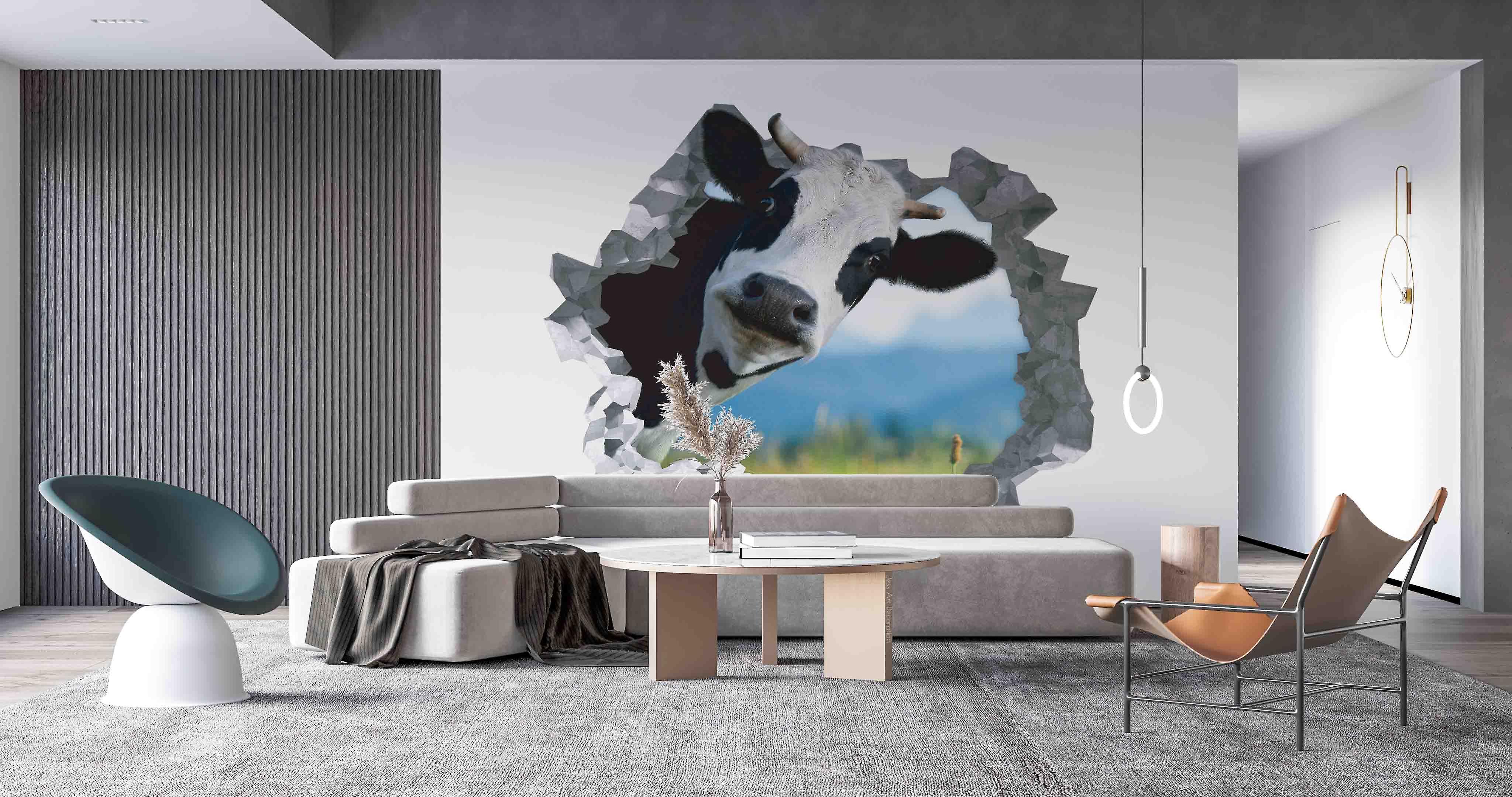 3D White Wall Hole Cow Meadow Wall Mural Wallpaper Gd 2575