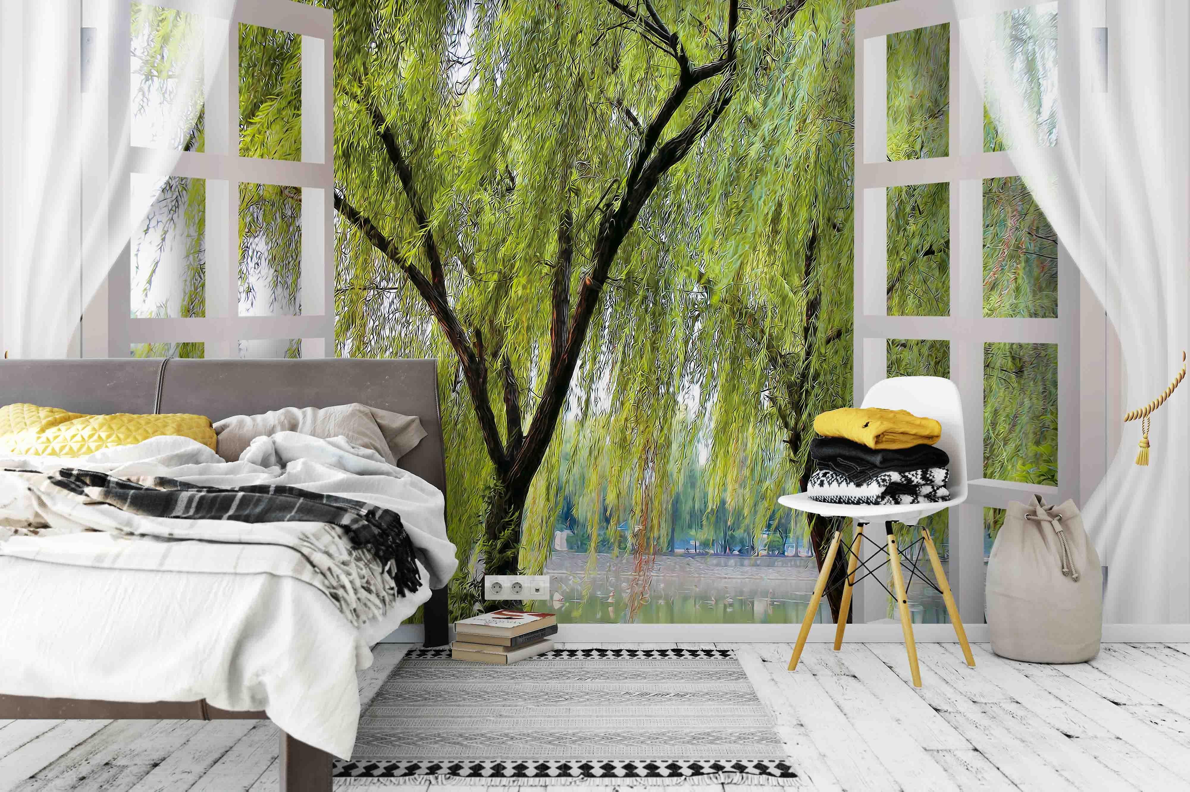 3D Window Willow Landscape Wall Mural Wallpaper Lqh 136