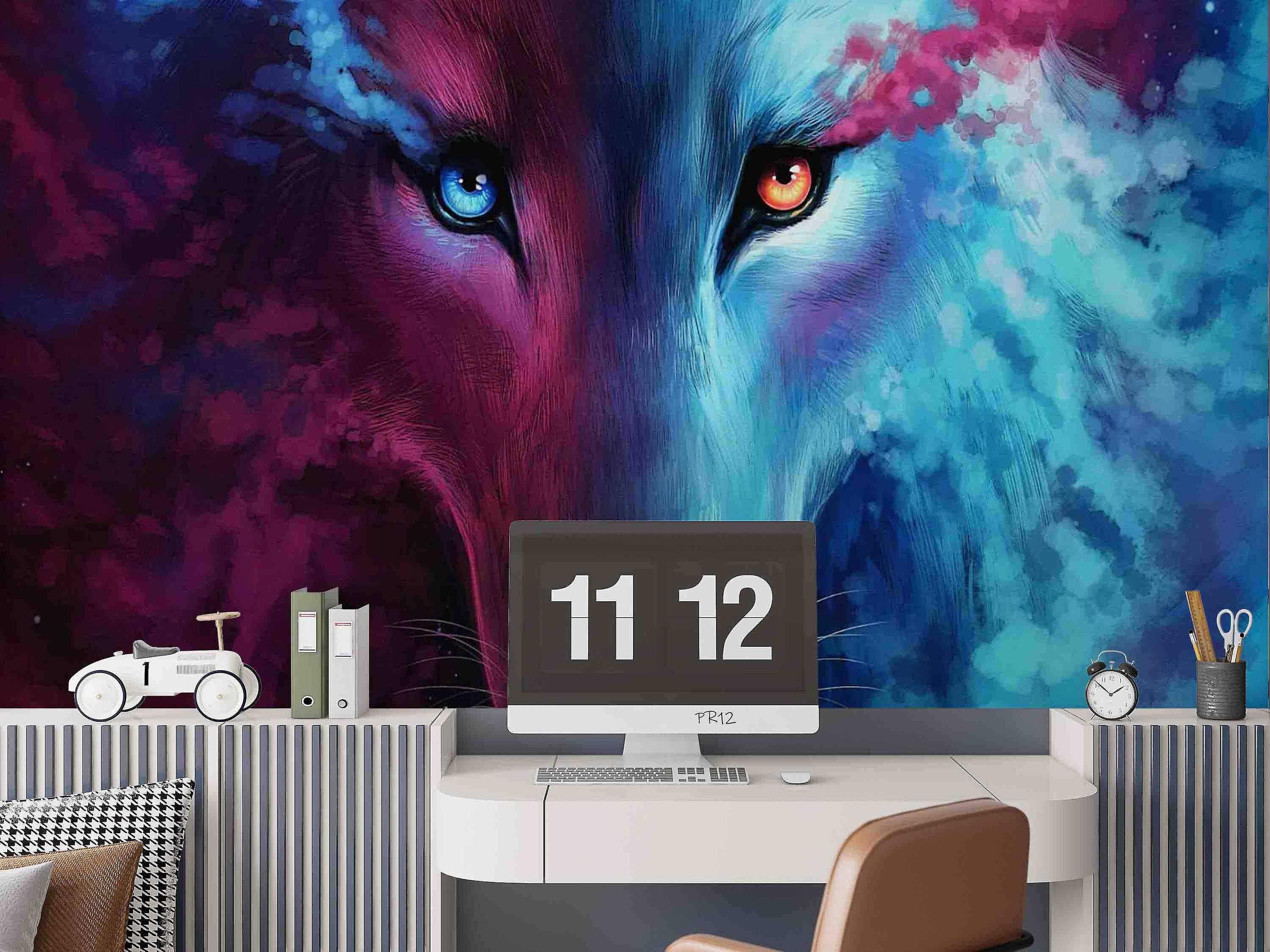 3D Wolf Head Blue Purple Wall Mural Wallpaper Gd 4941
