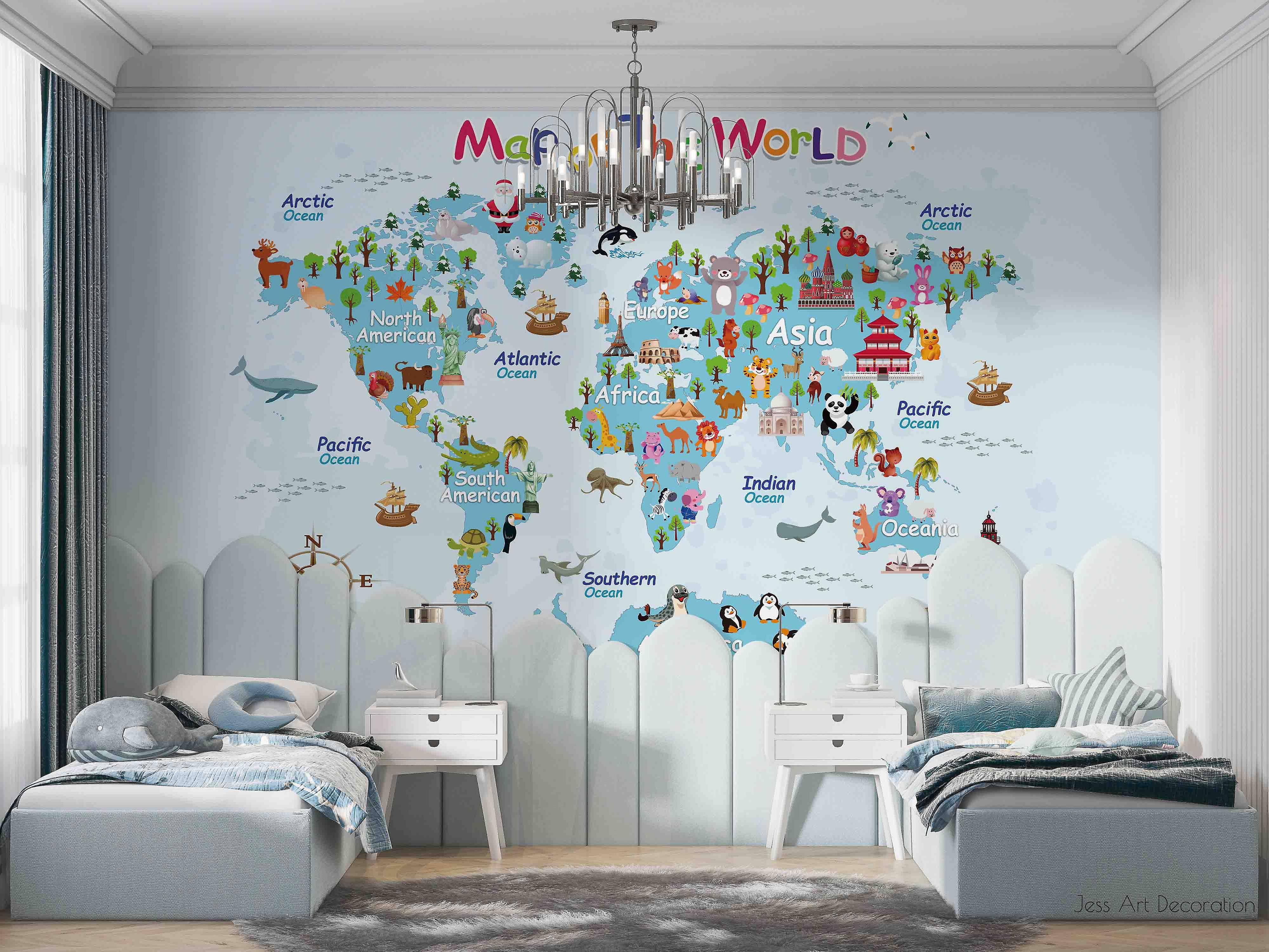3D World Map Animals Plants Buildings Wall Mural Wallpaper Gd 2959