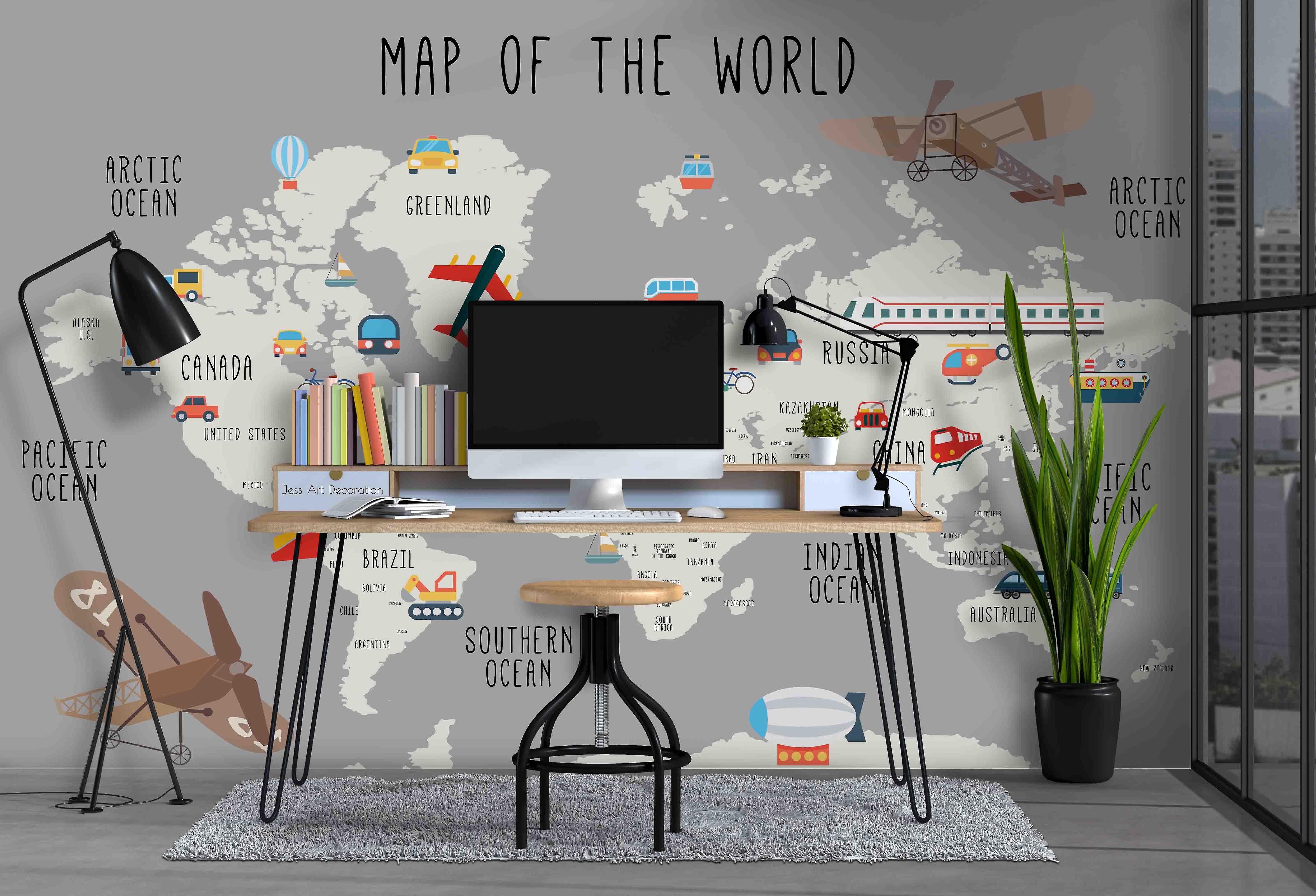 3D World Map Vehicle Wall Mural Wallpaper Gd 2535