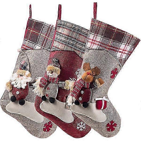 3pcs 17.5" Christmas Stocking Classic Christmas Character for Christmas Decorations for Family Christmas Party (style4)