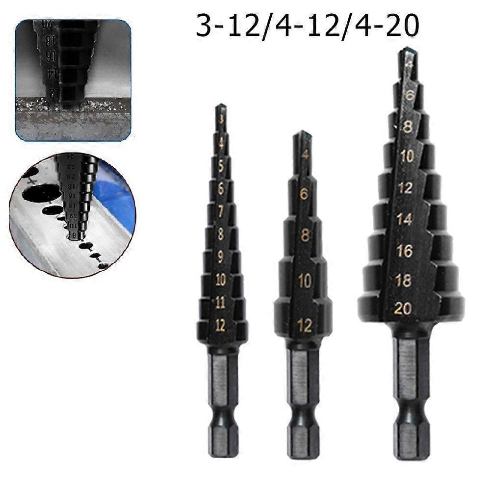 3pcs 3-12 4-12 4-20 Straight Groove Step HSS Drill Bits Coated Titanium Wood Metal Hole Cutter Core. Drilling tools set/