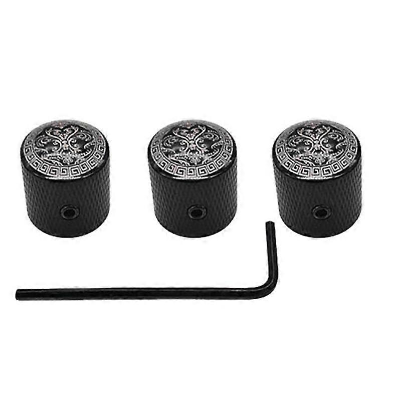 3Pcs Black Electric Guitar Metal Dome Volume Knobs Sound Control Potentiometer Switches Caps+Key
