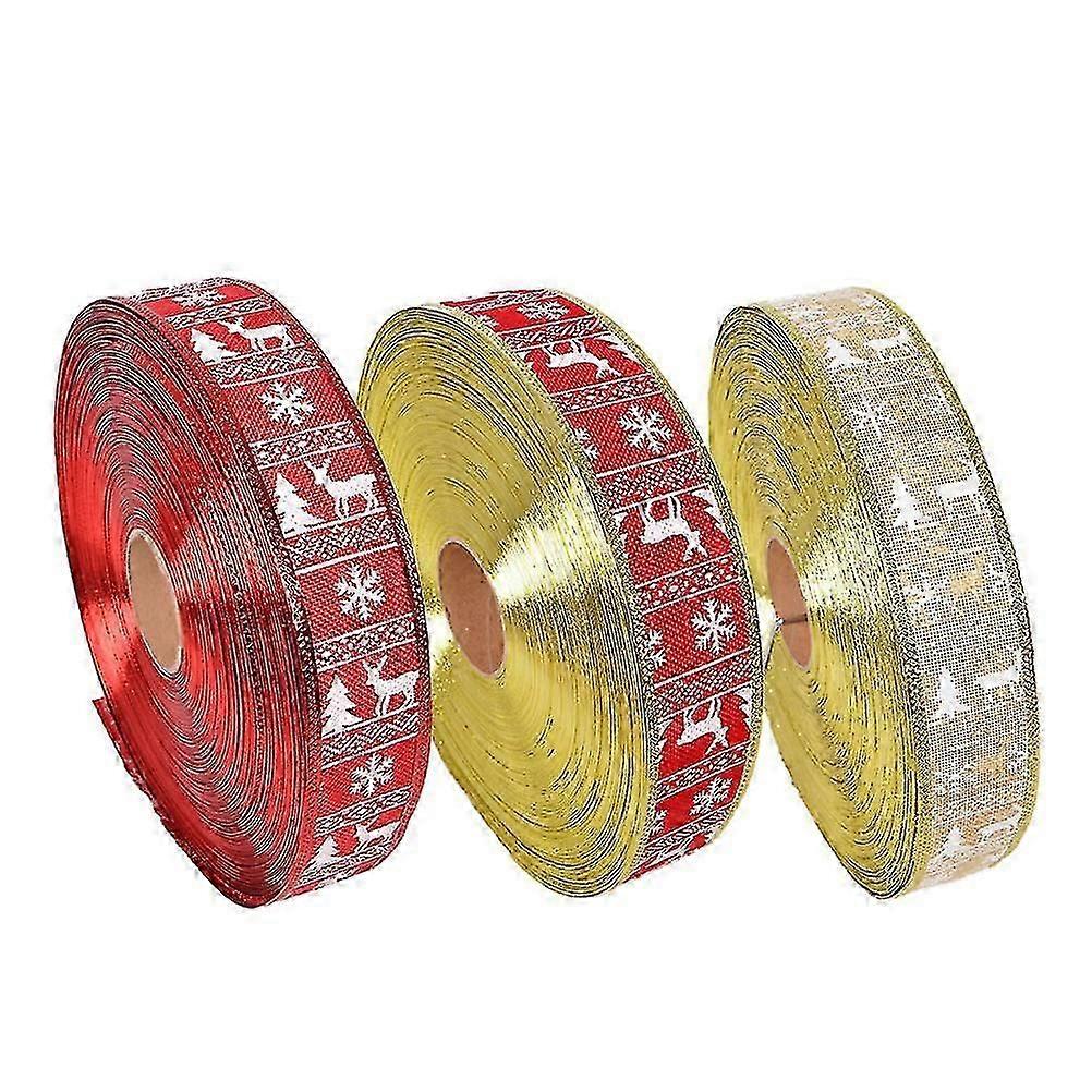 3pcs Christmas Flax Ribbon Diy Bow Ribbon Christmas Tree Garland Rattan Decorative Ribbon Christmas Printing Ribbon Gift Wrapping Ribbon (random Color