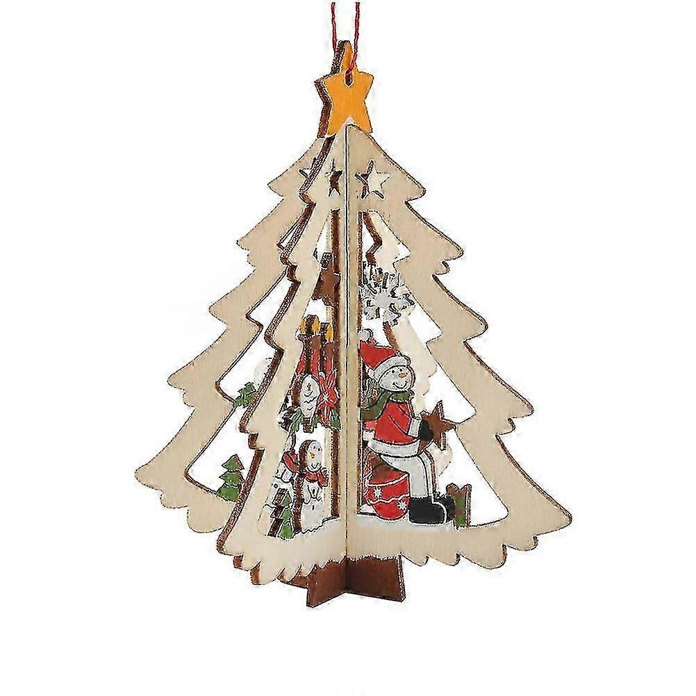 3pcs Delicate Wooden Five-pointed Star Christmas Tree Pendant Decoration Ornaments for Festival Party Hanging Xmas Tree Decor (Pentagram)