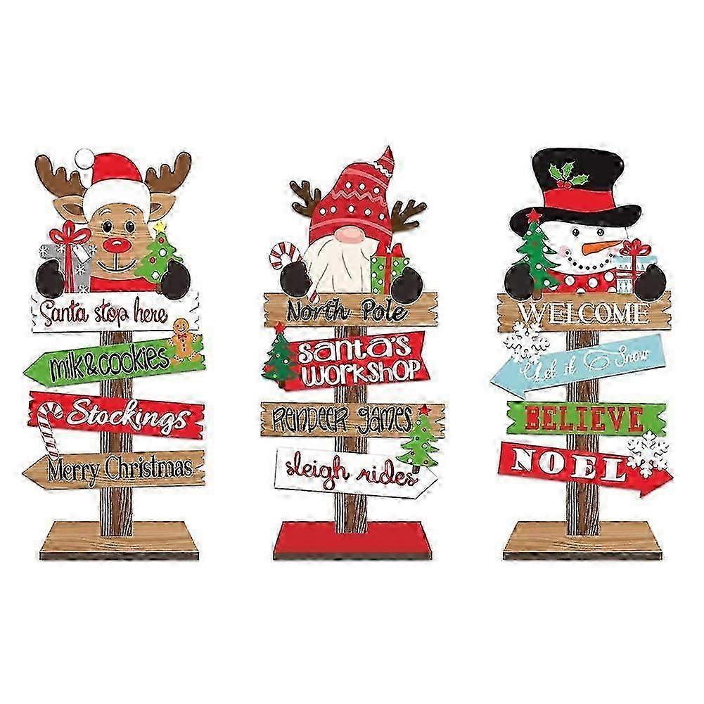 3PCS Desktop Christmas Tree Santa Claus DIY Decoration Wooden Christmas Signs Plaque Xmas Decoration