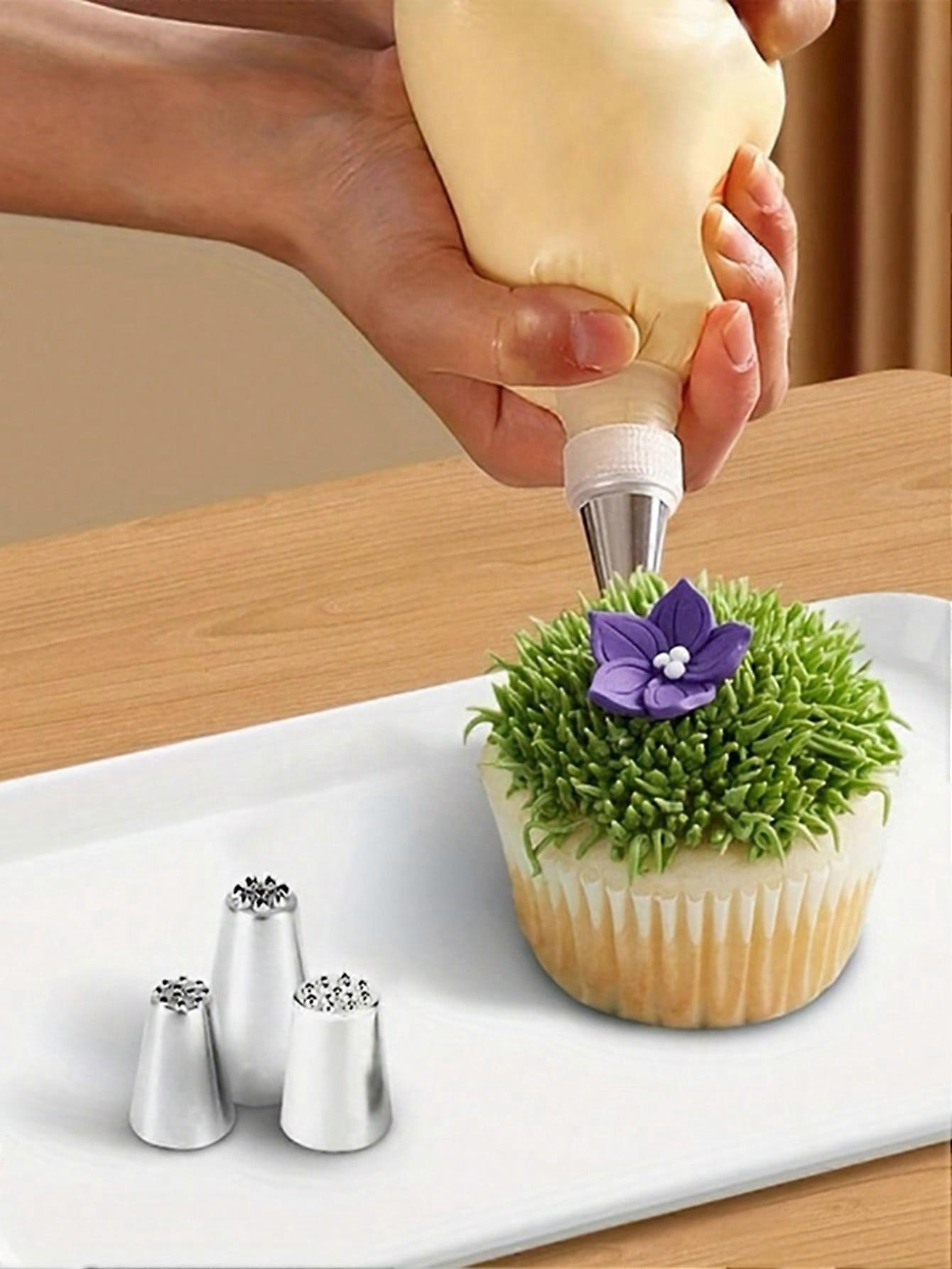 3pcs Grass Shaped Stainless Steel Icing Nozzles, Pastry Decorating Tools For Cream, Fondant, Chestnut Puree, Etc.