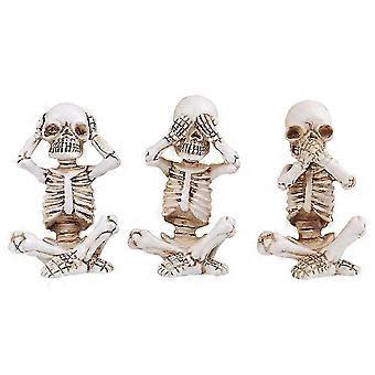 3PCS Halloween Mini Skull Statue Desktop Decoration Resin Decor Sitting Skeleton Figurines